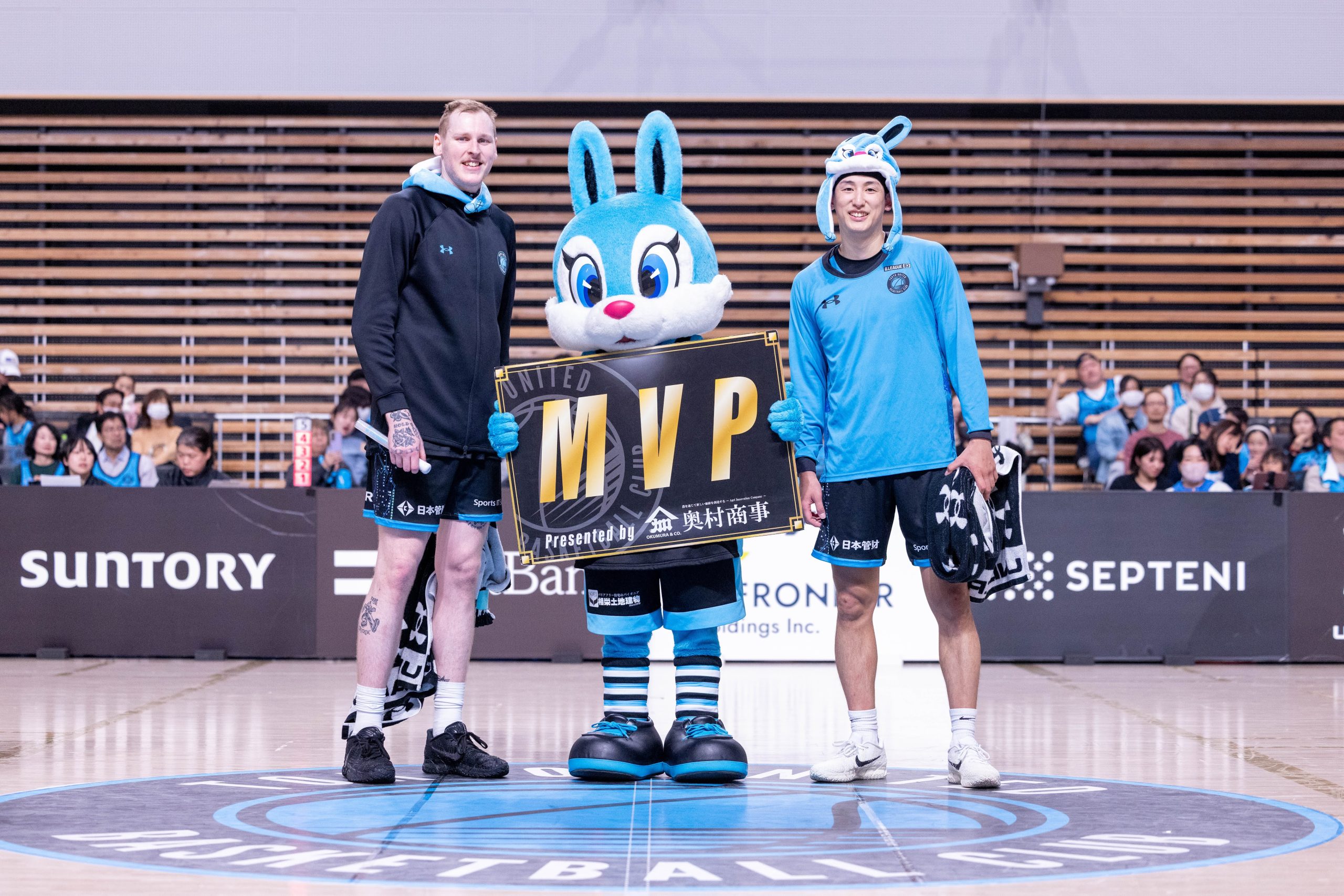 山口とのGAME1でMVPに選ばれた東京Uのリース・ヴァーグと徳川慎之介(写真左から)