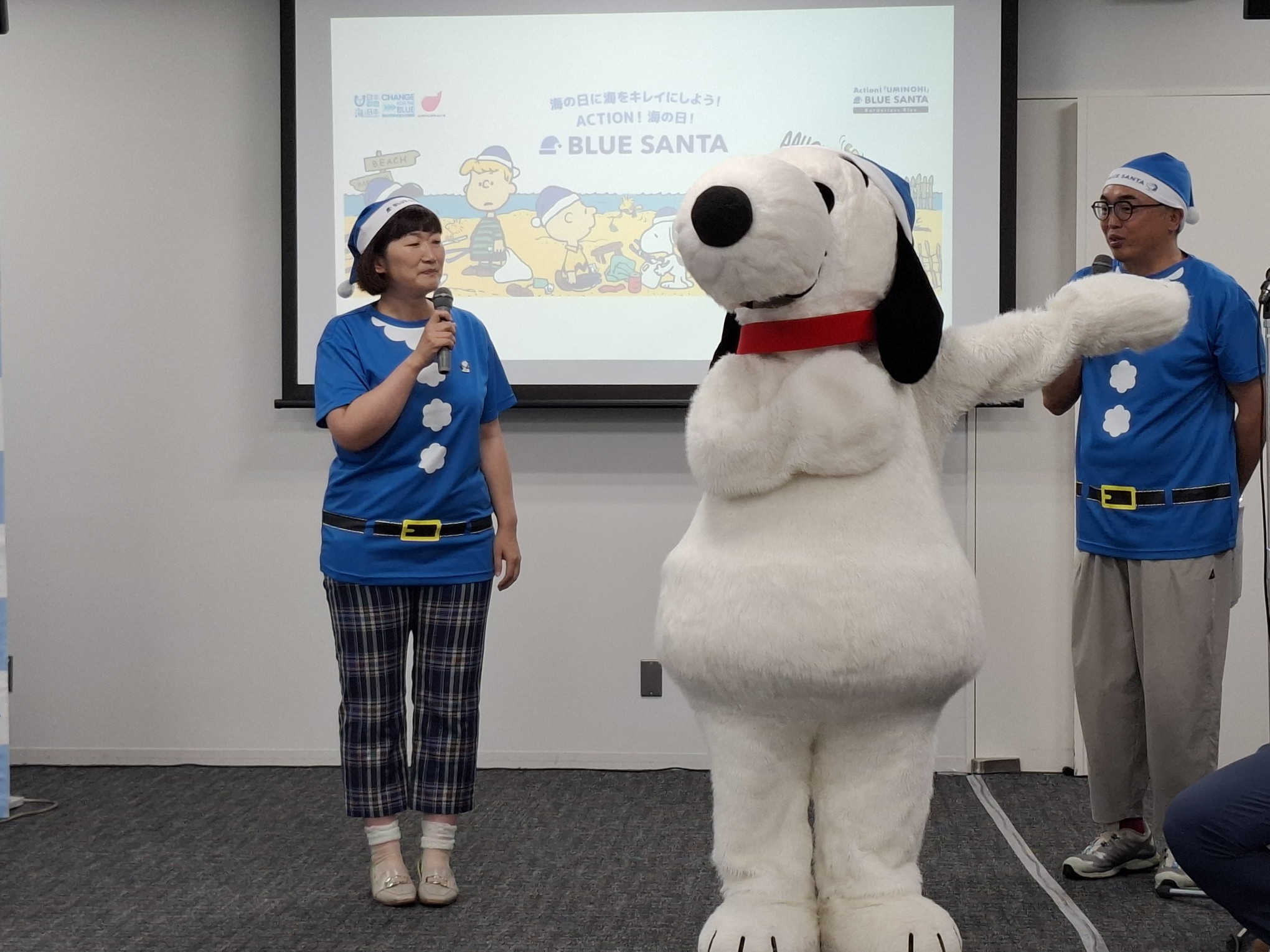 続けて、今年実施する「BLUE SANTA」の概要を説明した。「今年も一昨年、昨年に続き、スヌーピーやチャーリー・ブラウンなどが登場するコミック『PEANUTS』の参加が決定しました。『PEANUTS』作者のチャールズM・シュルツさんは、原作コミックの中で、自分自身や周りの人たち、そして地球を思いやることの大切さを数多く描いてきました。〝思いやりの輪〟を広げるプロジェクト『TAKE CARE WITH PEANUTS』を、グローバルで推進しており、中でも〝CARE FOR THE EARTH(地球への思いやり)〟に焦点をあて、日本国内では様々なマーケティング活動を行っており、今年も本活動に賛同し、継続参加することになりました」と、感謝の言葉を伝えた。