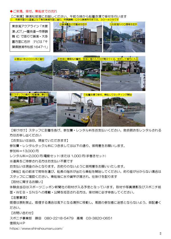 ・参加者は必ず救命胴衣を着用、イベント中の飲酒厳禁。マナーを守って楽しい釣りをしましょう。