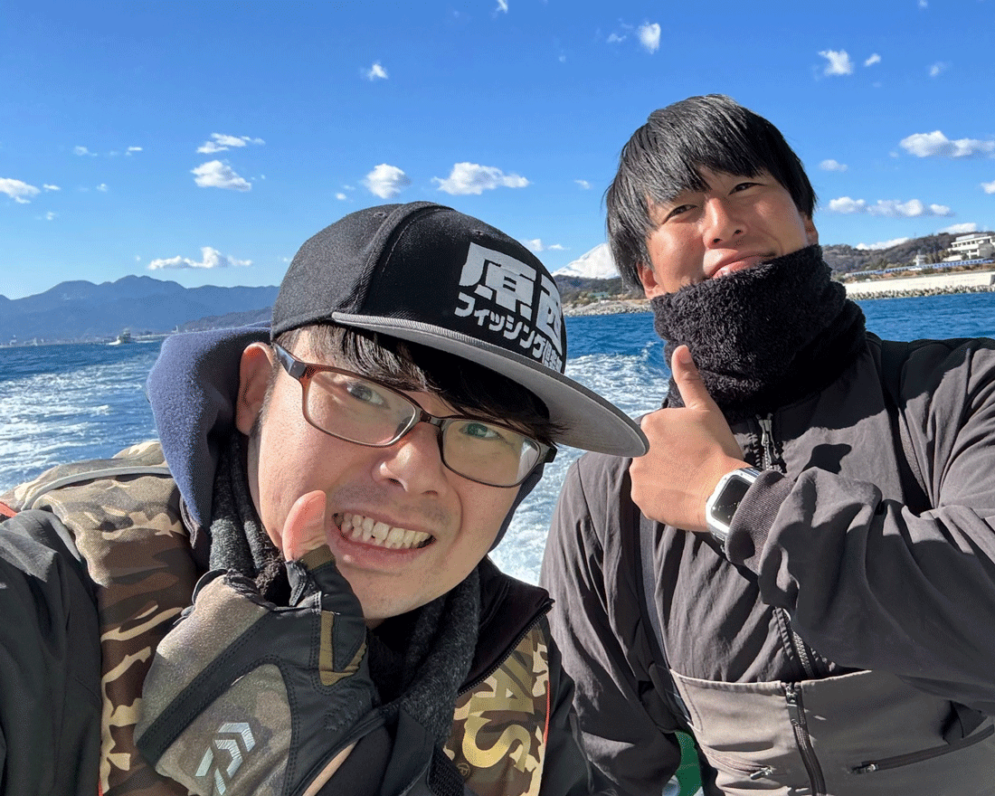 1匹の全長で勝負を決めるなら、運要素も十分に必要。誰にでもチャンスのある楽しいルール。受け付けする参加者は腕に覚えのありそうな面々ばかり。みんな目がギラついている。急に尻込みしているダサいイトーに、運が味方しました。釣り座を決める抽選で12号船の大ドモを引き当てた。さらに中乗りで釣り仲間である石渡隆也さんが乗船するというんです。これはまさに鬼に金棒、孫悟空に如意棒。頼れる仲間を得て、いざ出船したこの瞬間が幸運の最高潮だったとは…。