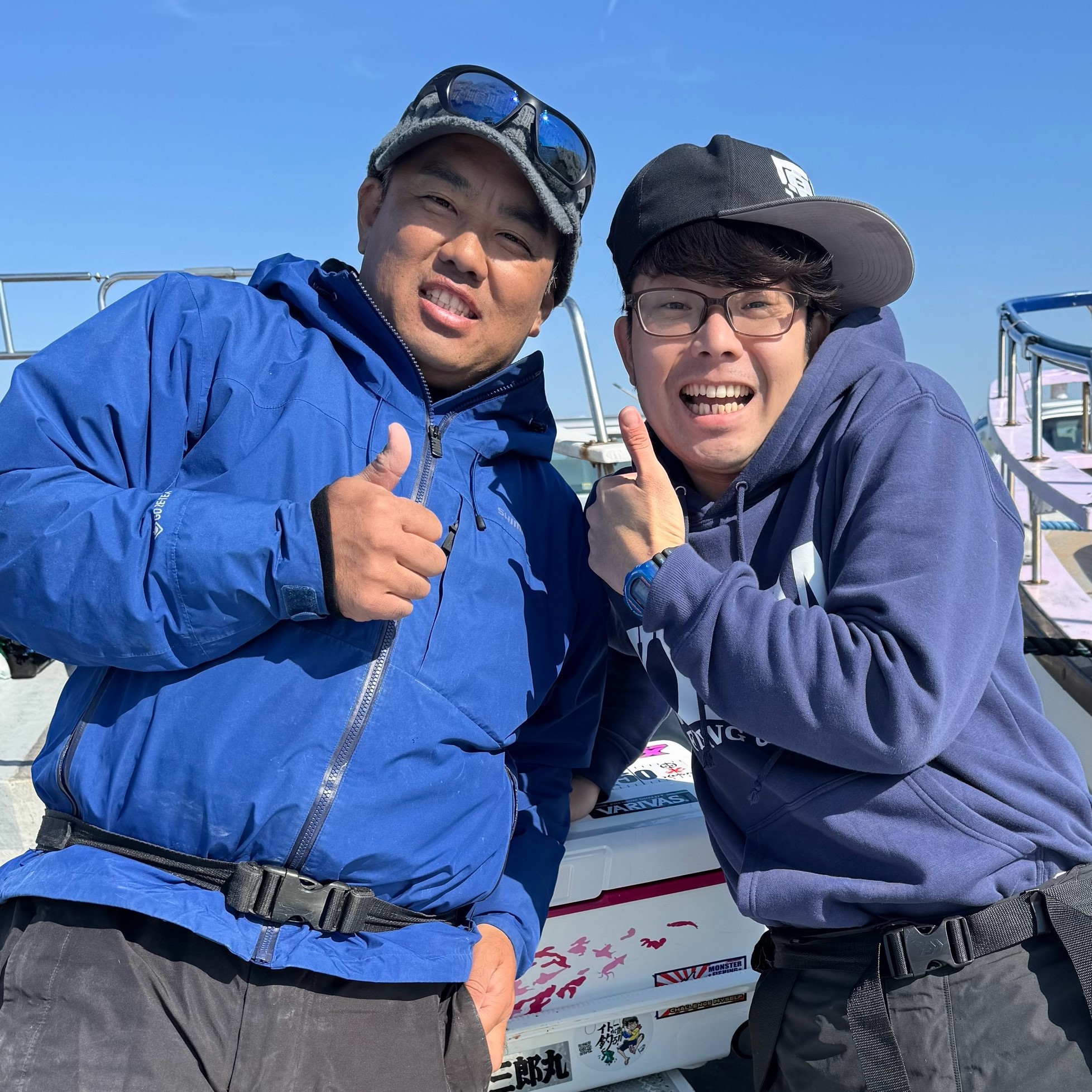 乗り込んだ平塚・庄三郎丸の左舷ミヨシで用意していると、隣にはルアーメーカー「サプライズ」の椙尾和義代表の姿が。バリバスのイベントで何度かご一緒したことはあるけれども、船上で会えるなんて。プロと同乗…、ありがたい。これは運が向いてきたぞ。