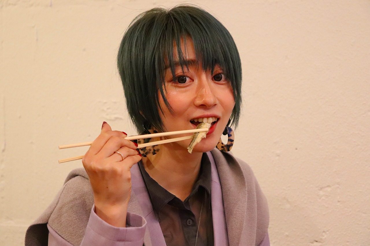 〇…ホンモロコの唐揚げを食べた鈴音は「高級魚と呼ばれるだけに身がホクホクで上品な味わい。塩加減も絶妙」と上機嫌。同店は豊洲市場で仕入れる鮮魚の刺身も評価が高く、こだわりの日本酒を目当てに訪れる客も多いという。