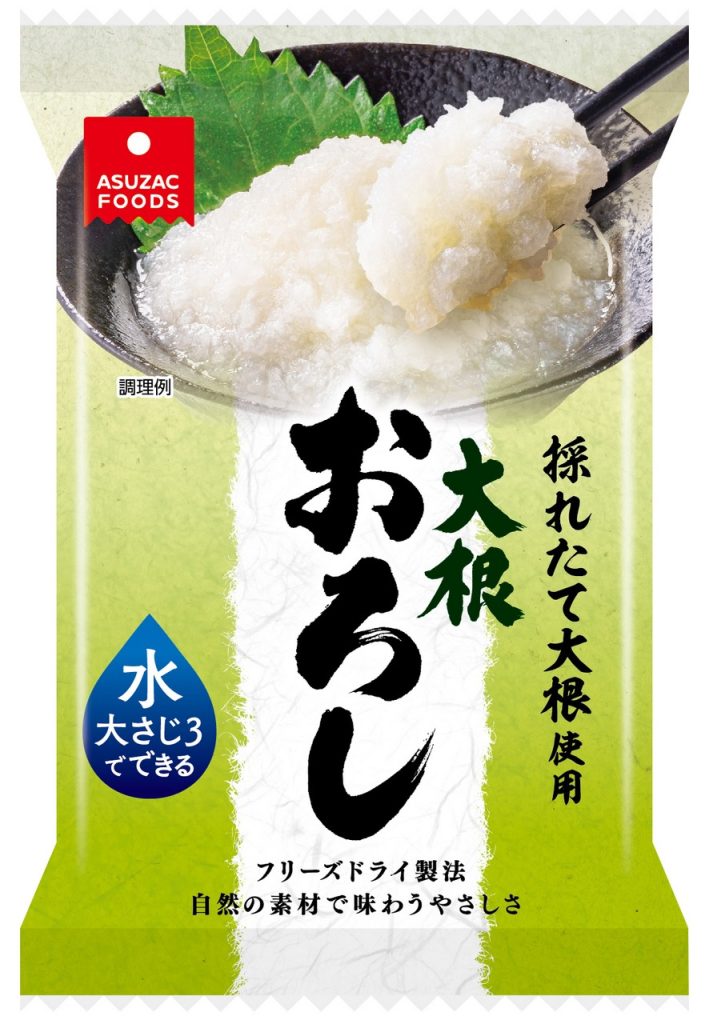 大根おろしを食べたいけど、作るのが面倒……そんなアナタに朗報!アスザックフーズ(本社・長野県須坂市)が製造販売するフリーズドライの「大根おろし」は、水をかけるだけで簡単に、おろしたてのような風味を楽しめる。
