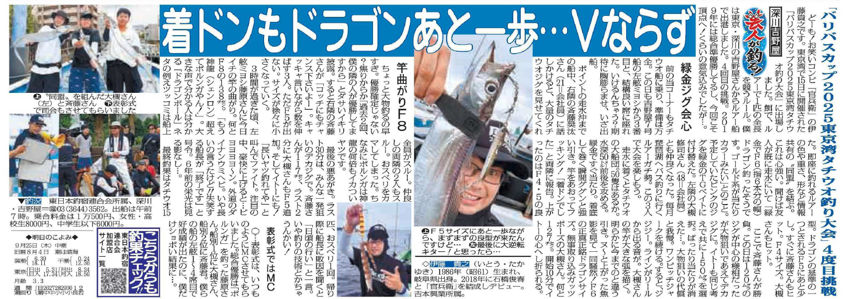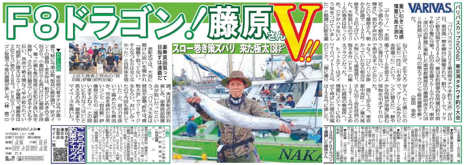 【大会名】バリバスカップ2025 東京湾タチウオ釣り大会