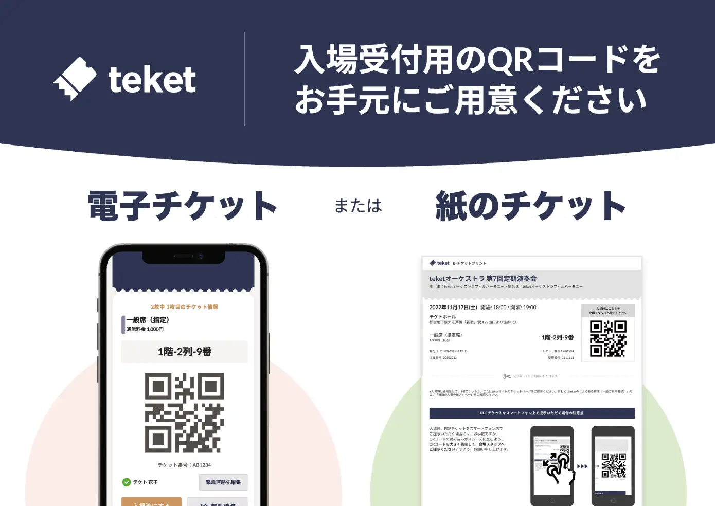 購入完了後、「teket」のチケットページ等にQRチケットが表示されます。