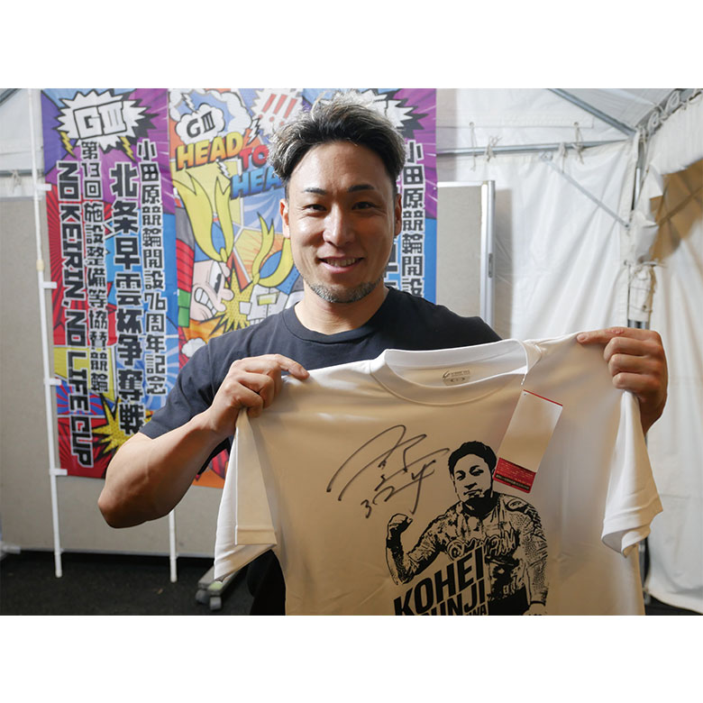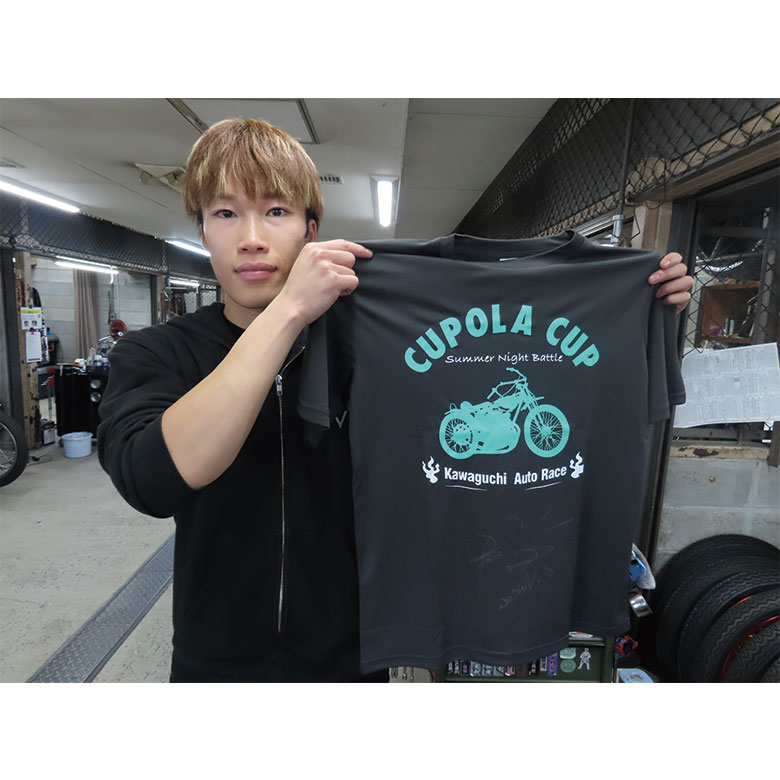 ⑨日本選手権オートレースV佐藤励サイン入り川口オートオリジナル半袖Tシャツ(Lサイズ)