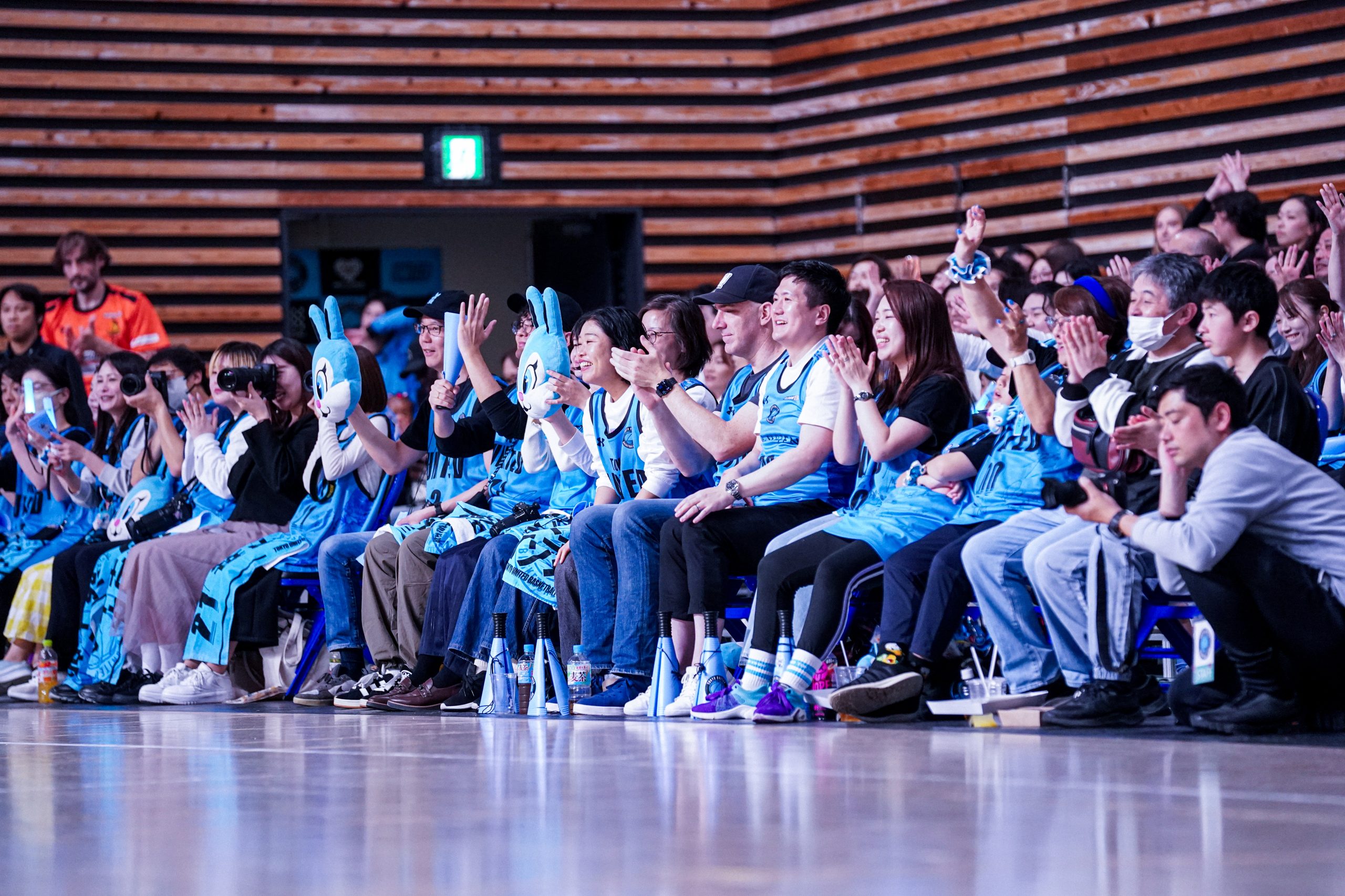 有明アリーナ(サブ)にはプレーオフ進出を目指すチームに青援を送る多くの東京Uのブースター〝BLUE RABBITS〟&ファンが来場した