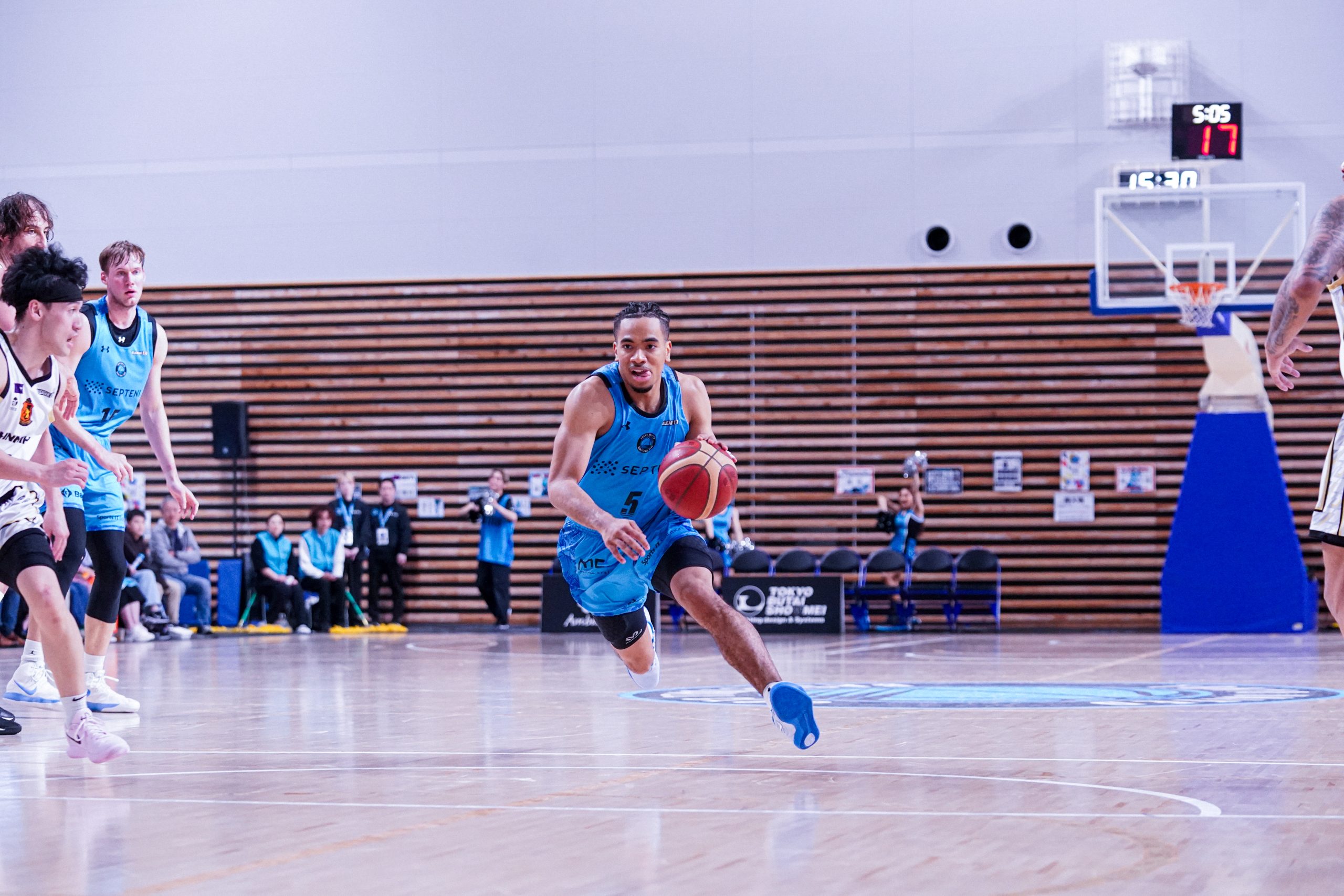 第1Q、東京Uはリース・ヴァーグが3Pシュートを含む7得点を挙げたほか、川島蓮も3Pシュートを含む5得点など着実に得点を重ねて29得点を挙げた。一方の三重の攻撃も20得点に抑えて、29―20の9点差のリードをつけた。