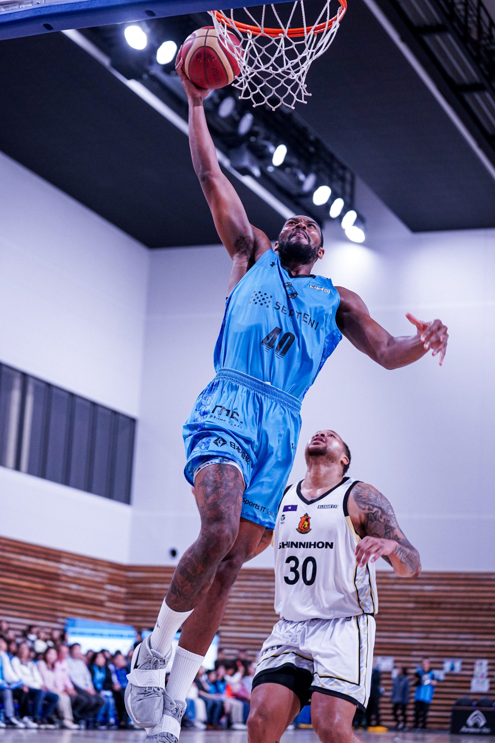 東京Uのジョーダン・フェイゾンはこの日も豪快なダンクシュートを放つなど15得点を挙げる活躍を見せた