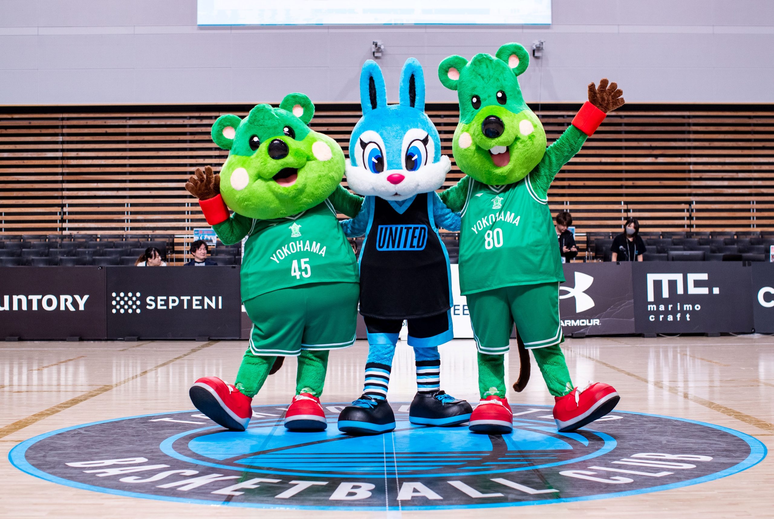 ホーム試合で初めて行った横浜EX戦にはチームのマスコット「Pick&Roll」も駆け付けて、ユナイトと一緒に会場を盛り上げた