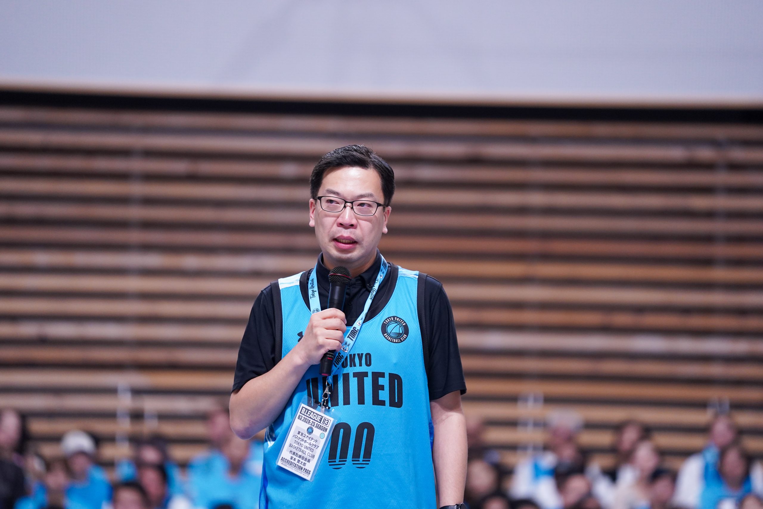 続いて、選手を代表してチーム最年長の宮田諭が挨拶した。「シーンとしていますね。そうですね、東京Zの皆さん、そして、東京Zを応援している皆さん、素晴らしいゲームだったと思います。おめでとうございます。TUBCを作ってから3年目ですが、1、2年目はプレーオフがアウェイーの地で戦って、静岡さんと香川さんに最後飲み込まれてTUBCは負けました。それを考えると、この3戦の東京Zのパフォーマンスと応援している皆さんのエネルギーが本当に素晴らしかったと思いますし、試合には勝ち負けがつくので、勝ち上がるのは東京Zさんですけど、どちらのチームもどちらを応援している皆さんが素晴らしいと思いますし、これがそうですね、僕らがコートに立ちたい理由であって、勝ち続けたい理由なんですけど、好きなことを一生懸命頑張って、皆さんに応援してもらえる機会があるということが、どれだけ特別で、その中で結果を出さなくてはいけないプロ選手がどれだけ大変なものかっていうことを、3年目にして初めて1勝してチームとして感じることができたので、たった3年じゃ勝ち上がれなかったという風にとらえて、この先難しい時間が始まると思いますが、一人一人が何をすべきか考えて、前に進んでいってほしいなと思っています。いつも選手たちに言ってますが、その人に訪れる結果はその人に相応しいものなので、プロセスを大事にして、この悔しさを口で言うのは簡単だけど、本当に忘れないでほしいし、毎日練習する時だけでなく、選手でいる限りは、そして、スタッフでいる限りは応援してくれる皆に顔向けできる様に毎日頑張ってほしいなと思います。今日は青い服を着て集まってくださった皆さん。3年間応援してくれた人もいると思うし、今年からの人もいると思うし、思いはそれぞれだと思いますが、十分に届いていたと思いますし、どちらのチームにも本当に感謝の気持ちでいっぱいです。素晴らしい3日間と、素晴らしい3年間をありがとうございました」と、言葉を選びながら、感謝の気持ちを熱いメッセージで伝えた。