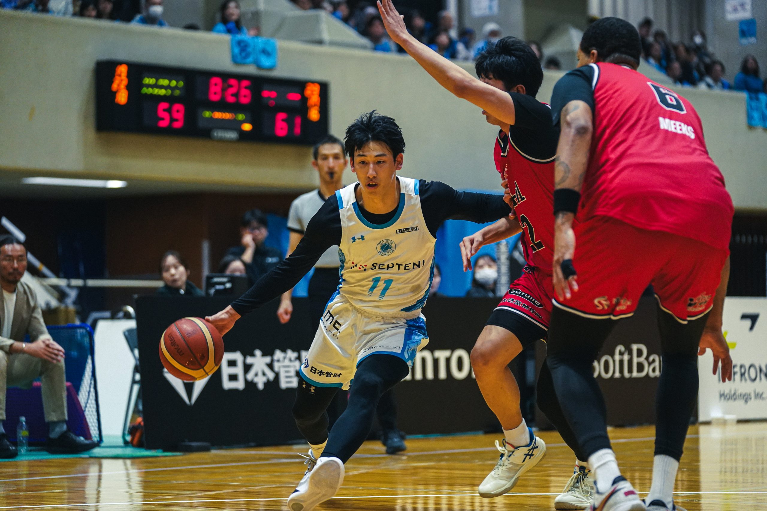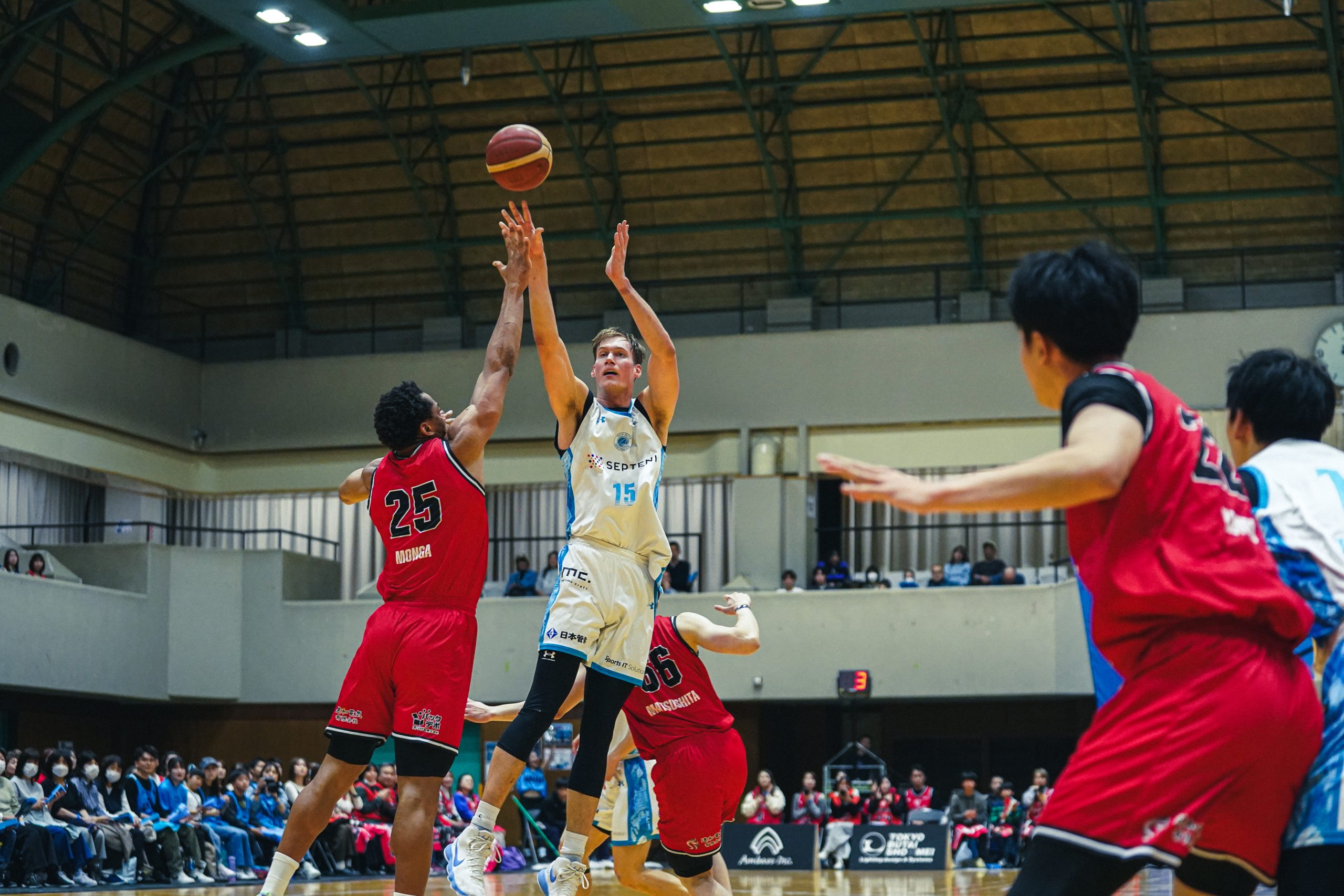 ハーフタイム後、第3Qに入り、さいたまは東京Uのディフェンスに苦しめられる中、4本の3Pを含む16得点を挙げるが、東京Uはハイデン・コヴァル、東宏輝、川島蓮らが各4得点、リース・ヴァーグも3Pを決める活躍で第3Qを59―56の3点のリードで勝負は最終第4Qへと続いた。