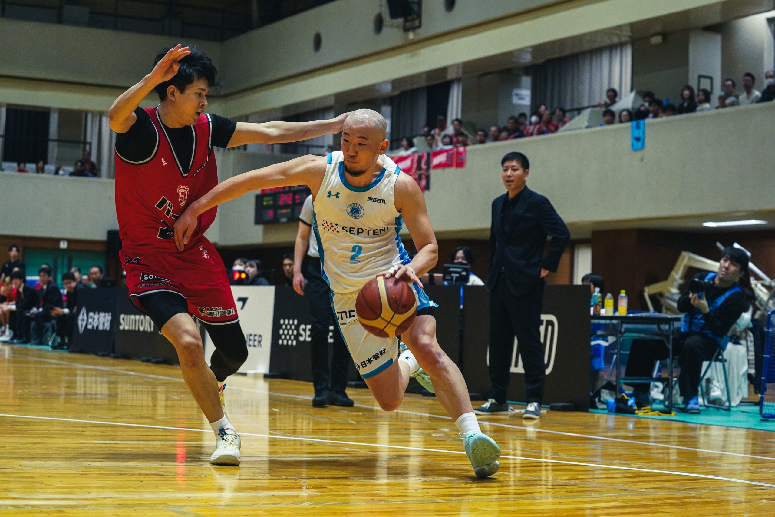 第1Qから、前日とは一変して東京Uはさいたまにリードを許す展開となった。東京Uは、ハイデン・コヴァルが7得点、川島蓮が4得点、徳川慎之介も3pを決めるなど19得点を挙げるが、さいたまも攻守で実力を見せて、3本の3Pを含む23得点を挙げて、19―23と4点のリードを許してしまった。