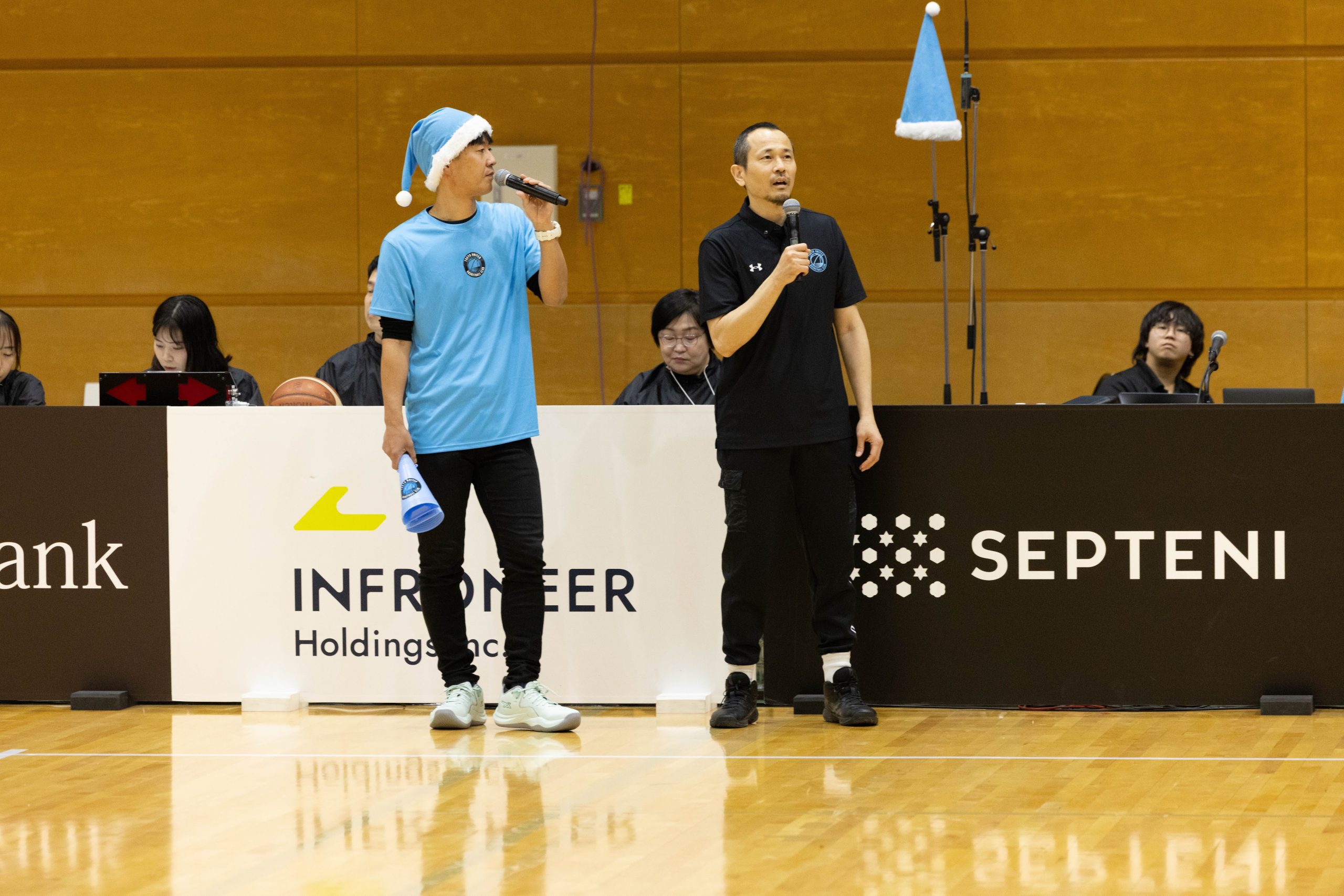 中央区総合SCで行われたしながわとのGAME1では、東京Uのマスコット「ユナイト」はサンタ姿で会場を盛り上げた