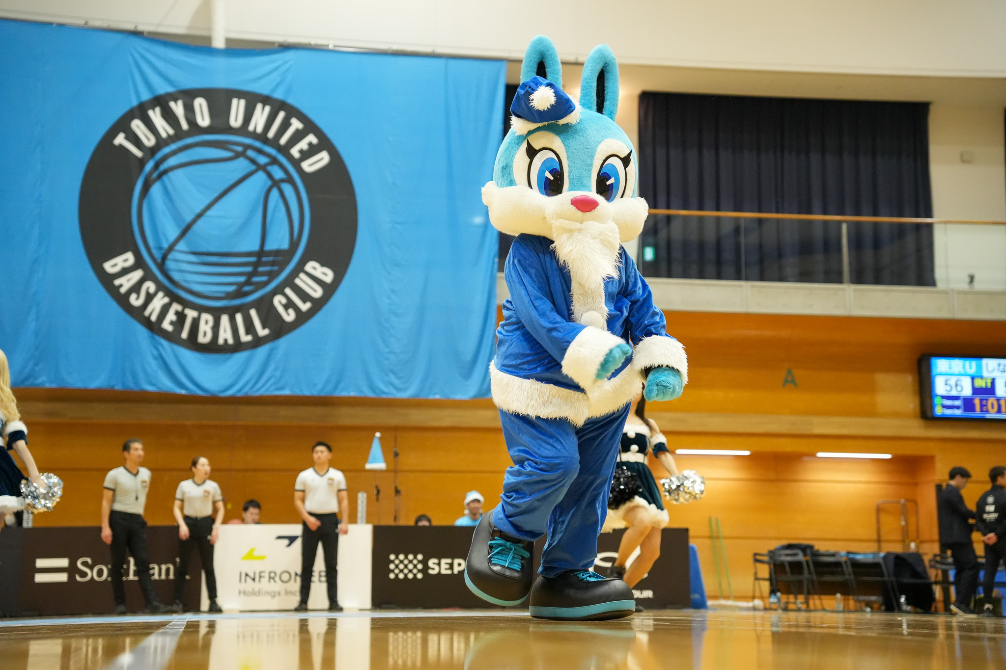 中央区で初めて行った東京Uのホームゲーム。前々節(第11節@12月6、7日)有明アリーナ(サブ)で行われた山口パッツファイブとのホーム試合GAME2での敗戦後、前節(第12節@同・12、13日)八王子ビートレインズとのアウェイ2試合で連敗を喫した東京U。2025年最後のホーム試合となった今節のしながわ戦。熱く青援を送る東京Uのブースター〝BLUE RABBITS〟やファンに勝利の贈り物を送りたいところだったが、 しながわとのGAME1で攻守のキーマンとして、開幕戦以降出場してきたリース・ヴァーグが欠場した。しかし、先発メンバーとして名を連ねたブラ・ブサナ・グロリダをはじめ、東京Uの選手たちがエナジー全開にして連敗ストップ、そして、ホームでの勝利に向けて第1Qから躍動した。