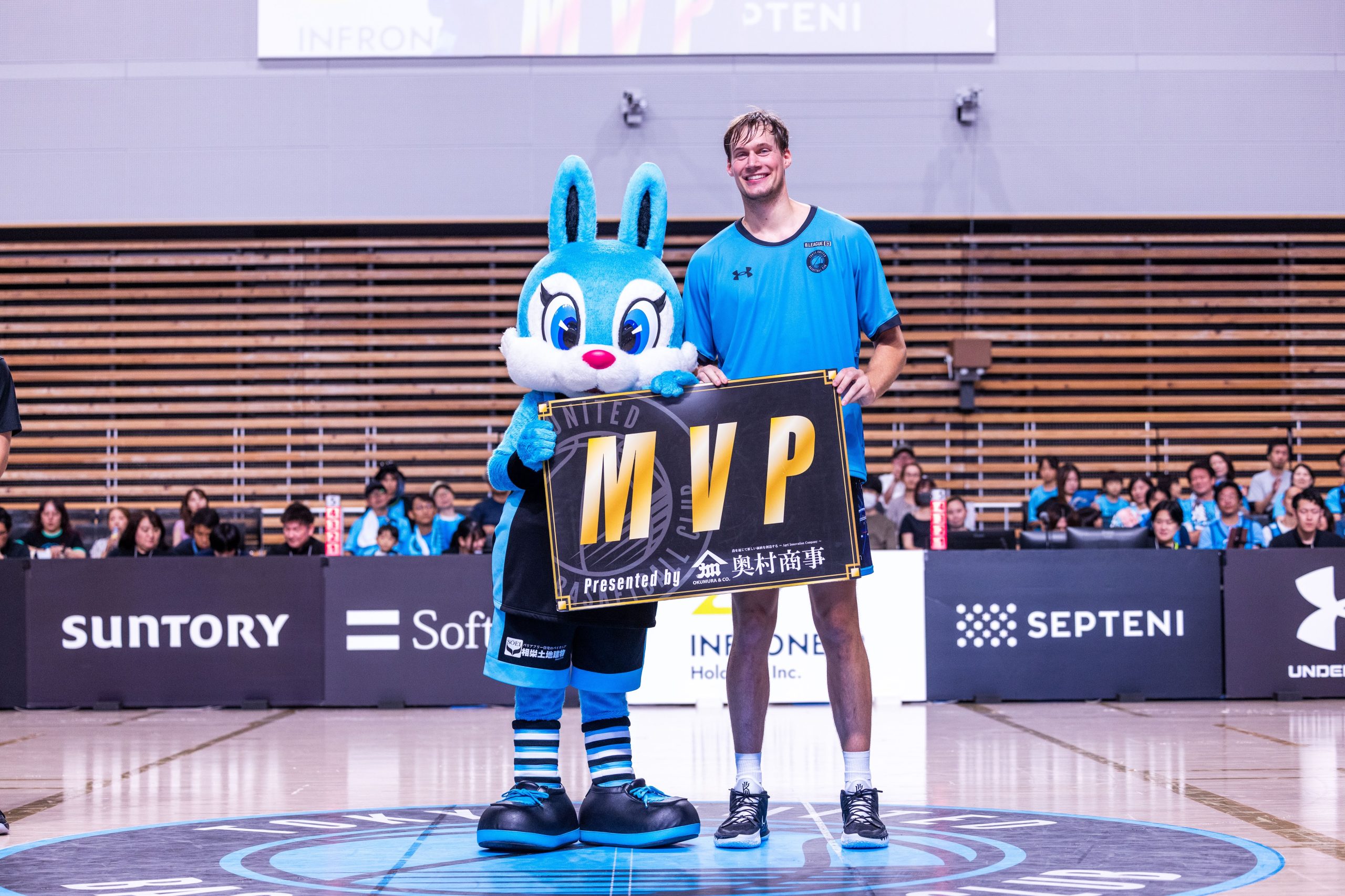 続いて、湘南との試合でMVPには、攻守で活躍した東京Uのハイデン・コヴァルが選ばれた。「(TUBCの一員として初のプレシーズンゲームとなったが、今日の試合を振り返ってみてください)今日初めてのプレシーズンゲームで、一人一人チーム一丸となって闘うことができました。今日は全体的に試合も良い展開が作れたので、良い試合が見せられたのではないかと思います。(コヴァル選手といえば、チームで一番のビッグマンとなります。ファンにどんなプレーを見てほしいですか?)自分はディフェンスのプレーヤーだと思うので、しっかりとコート上を走ってブロックをしたりして、オフェンスでは、チームのために何ができるかを理解して貢献できる様なプレーができれば良いなって思います。(違った質問ですが、好きな食べ物は何ですか?日本語で答えてください)トンカツ。(最後にファンへのメッセージを)まずはご来場いただき、ありがとうございます。B3が今年で最後シーズンとなるので、できればチャンピオンシップに行って良い試合を見せられる様に頑張りますので、シーズンを通して引き続き応援を宜しくお願いします」と話した。