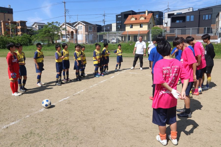 6年生を担当する本山真也コーチも、ボランティアコーチの1人で、自身の息子がチーム卒団後もチームに残り、指導を続けている。「試合では、なかなか勝ち切れない学年ではあるが、練習では、ボールタッチ、パスなど、反復練習によって、技術の向上を図っている。楽しくサッカーを続けてもらって、中学、そして高校年代で活躍する選手になってほしい」と話す。