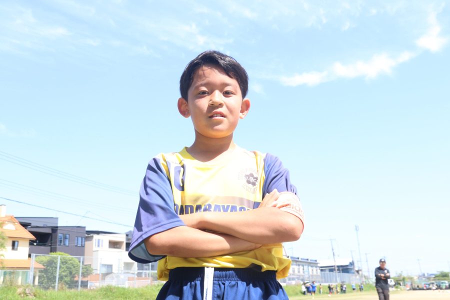 キャプテンの杠(ゆずりは)穂玖くんは、2年生の時に友達に誘われたのがキッカケでチームに入団。ポジションは主に中盤、ボランチで、「パス、シュートには自信がある。チームワークが抜群。(アクアチャレンジカップ)初戦は全力で戦い、勝利を目指したい」と力強く語った。