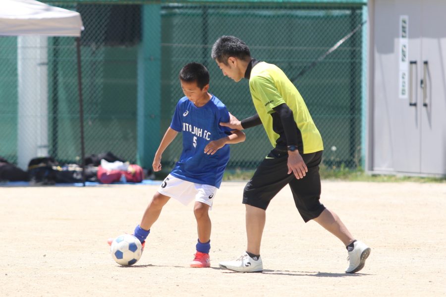 コーチ陣は監督以下16名のコーチスタッフが、ボランティアで指導。中学生を中心としたOB選手も、しばしば練習に加わり、チームを盛り立てている。6年を担当するのは島川剛コーチで、自身の子供が入団したのをきっかけに、指導の輪に加わった。府内の強豪私学高出身で、当時の経験を生かし、指導にあたっている。「技術的に劣る選手が多い年代であったが、子供はやれば伸びる。負けて悔しいのならば、やれば必ずできることを言い続けた」と話す。