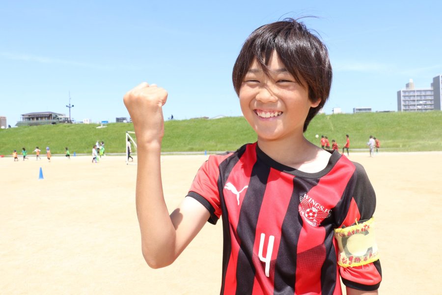 キャプテンを務めるのは山根莉太くんは、1年生のときに、ロシアW杯をテレビで観たのをキッカケに、サッカーを始めた。自らドリブルで仕掛け、ミドルシュートまで持っていくのが持ち味で、「劣勢なときにでも声をかけ、チームを盛り上げる。ゴールを決め、勝利につなげたい」と、力強く話した。