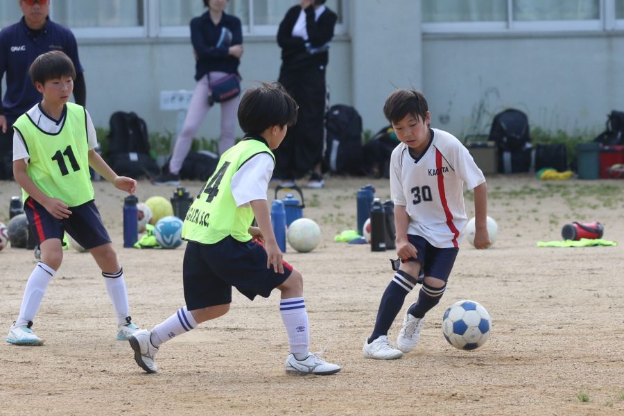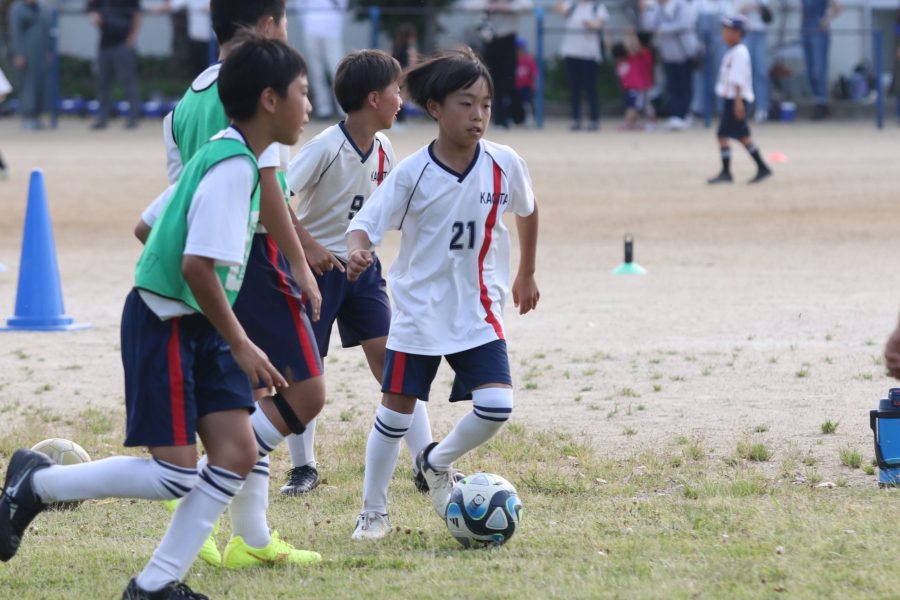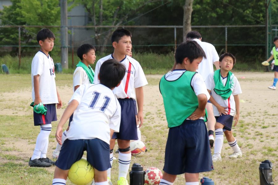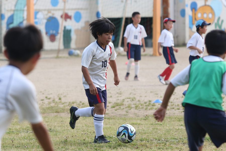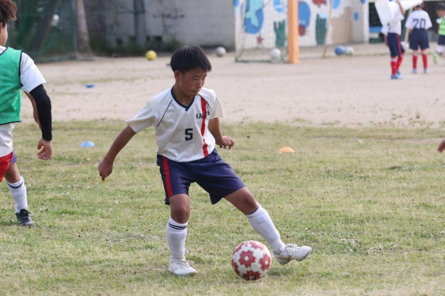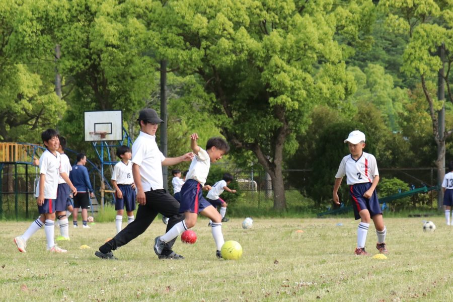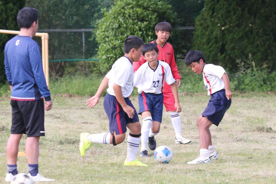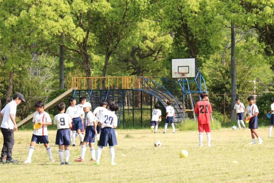 6年生を担当するのは、服部晋也コーチは、「試合でもあまりコーチングなど声を出さずに、選手に任せている」と話し、練習も選手の自主性を伸ばす内容のものが多い。
