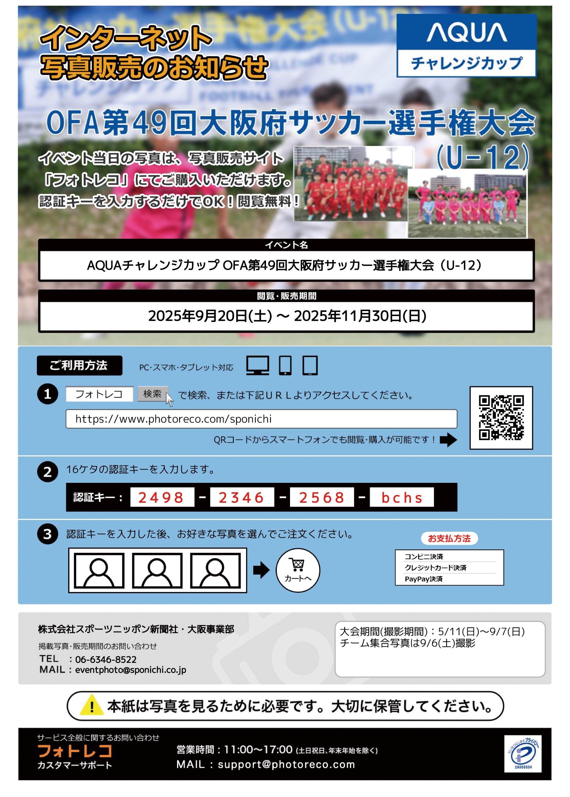 写真販売サイトフォトレコにて、認証キーを入力し、購入画面にお進みください。