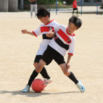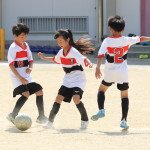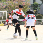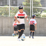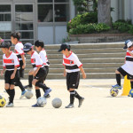 6年生を指揮するのは、奥江修司コーチで、20年以上チームに関わり指導している。「子供達一人一人がスキルアップでき、楽しく勝てるサッカーを目指して指導している。」と話す。練習はリフティングに始まり、浮き球のトラップ、ドリブル、対人練習と、基本的なメニューが多く、ミニゲームでは笑顔でボールを奪い合う中にも、時折激しさもあり、選手ひとりひとりが、楽しくまた真剣に取り組んでいる。