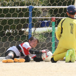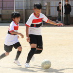 チームの中心は、DF・森田巧くんと、GK片山蓮生リードくんの2人だ。森田くんは、小学3年生の時に、同校に転校してきたのをきっかけにサッカーを始め、チームに加わった。相手の動きを読んでドリブルに身体を入れて止めるディフェンスや、シュートブロックで攻撃を封じる。「好きな選手は長友佑都(現J1・FC東京)で、臨機応変で、どこでも対応できる選手になりたい」と話す。片山くんは、小学1年生時に、YouTubeでスペインサッカー「クラシコ」を見たときに、FCバルセロナのプレーに魅せられサッカーに興味を持ち、チームに入団した。GKとなったのは3年生で、本人いわく「何となく。点を止める方が楽しかった」とのこと。最後尾から声を出し、チームを盛り上げる。「5年生のときに、地区大会で大量失点をくらい、とても悔しかった。それ以来、練習により力を入れている。自分のセービングで無失点に抑える」と力強く話してくれた。大会初戦は、同地区の強豪チームが相手だが、2人の強固なディフェンスを中心にチーム一丸で勝利を目指す。