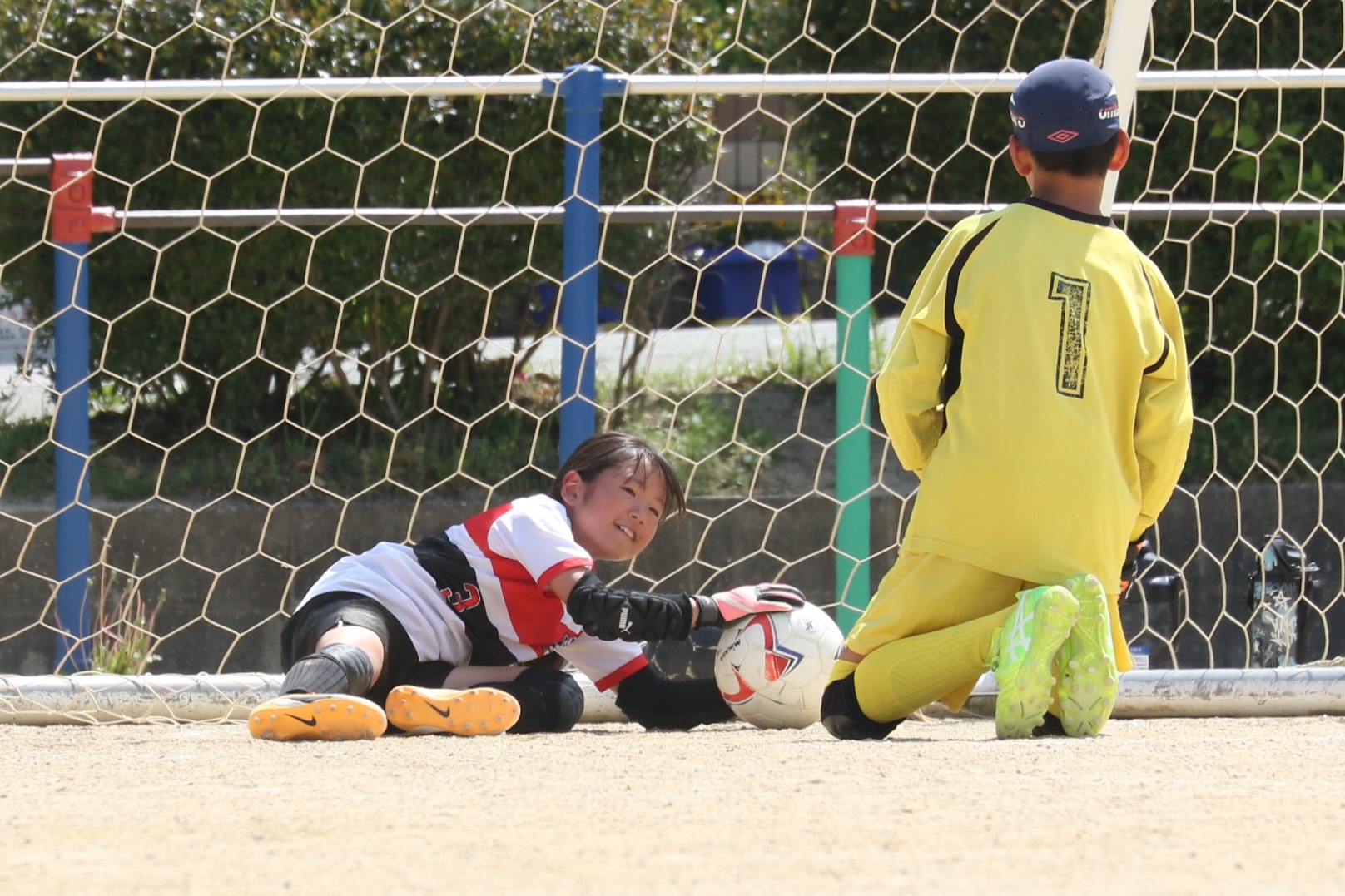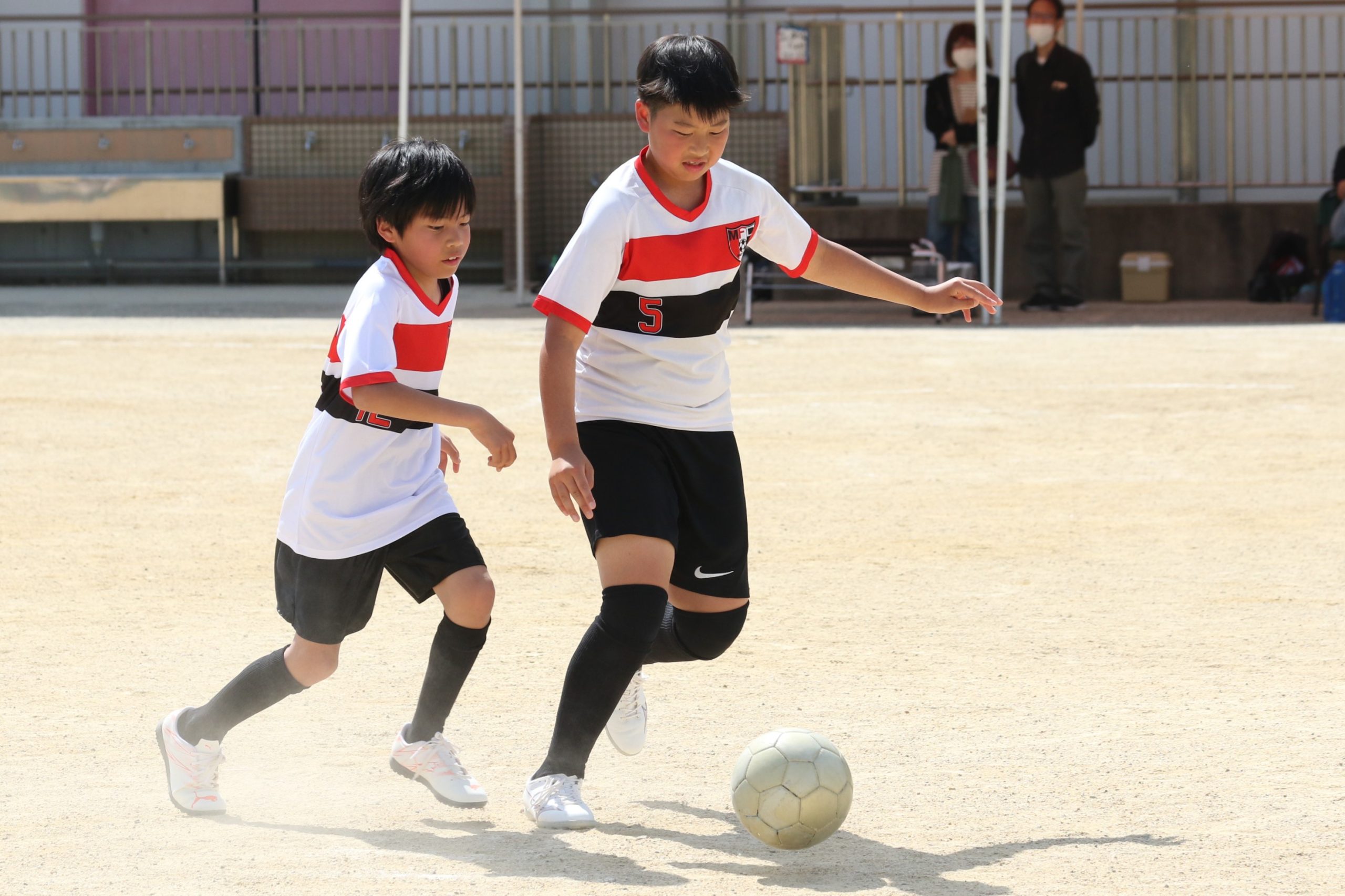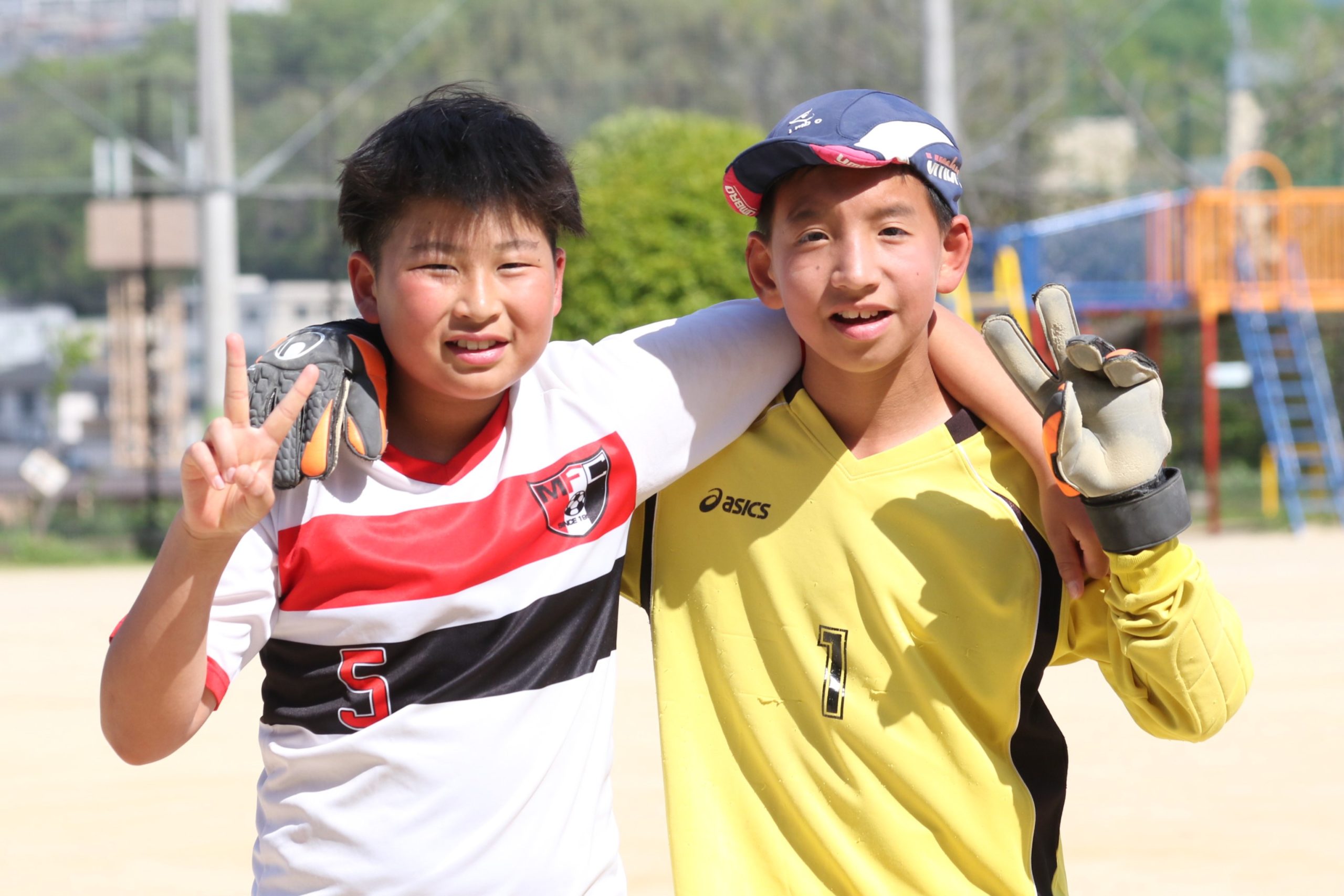 チームの中心は、DF・森田巧くんと、GK片山蓮生リードくんの2人だ。森田くんは、小学3年生の時に、同校に転校してきたのをきっかけにサッカーを始め、チームに加わった。相手の動きを読んでドリブルに身体を入れて止めるディフェンスや、シュートブロックで攻撃を封じる。「好きな選手は長友佑都(現J1・FC東京)で、臨機応変で、どこでも対応できる選手になりたい」と話す。片山くんは、小学1年生時に、YouTubeでスペインサッカー「クラシコ」を見たときに、FCバルセロナのプレーに魅せられサッカーに興味を持ち、チームに入団した。GKとなったのは3年生で、本人いわく「何となく。点を止める方が楽しかった」とのこと。最後尾から声を出し、チームを盛り上げる。「5年生のときに、地区大会で大量失点をくらい、とても悔しかった。それ以来、練習により力を入れている。自分のセービングで無失点に抑える」と力強く話してくれた。大会初戦は、同地区の強豪チームが相手だが、2人の強固なディフェンスを中心にチーム一丸で勝利を目指す。