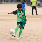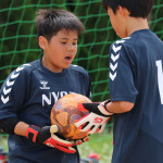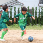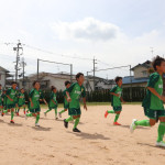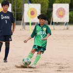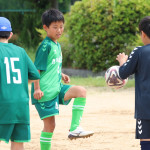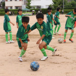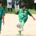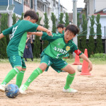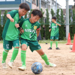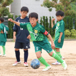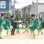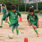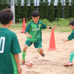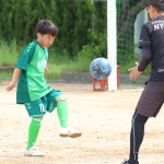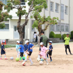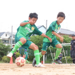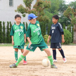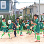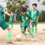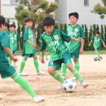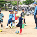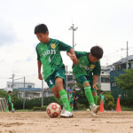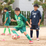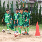 6年生をメインに担当するのは渕ノ側敏夫コーチで、基礎技術やメンタル面を熱心に指導、「基礎を大事に。中学生、高校生となっても役に立つ技術をつけてほしい」と話す。近所の今城塚古墳までの軽いランニングトレーニングなど気分転換を図るメニューなども取り入れている。また技術的、戦術的なサポートをするのは、チーム副代表も務める木田和之コーチで、自身の大学、社会人サッカーの経験を生かし、選手たちに指導を行っている。GK専門コーチもおり、所属選手は地区・地域トレセンにも選出されている。取材に訪れたこの日は、全員で声を揃えて元気にブラジル体操で身体を温め、2人1組での基礎練習、ショートパス、ロングキックでアップ。その後、1対1、2対2でのトレーニングでは、ドリブル突破時のスピードのかけ方や、ディフェンス時のポジショニングや身体の向きを細かく指導されていた。