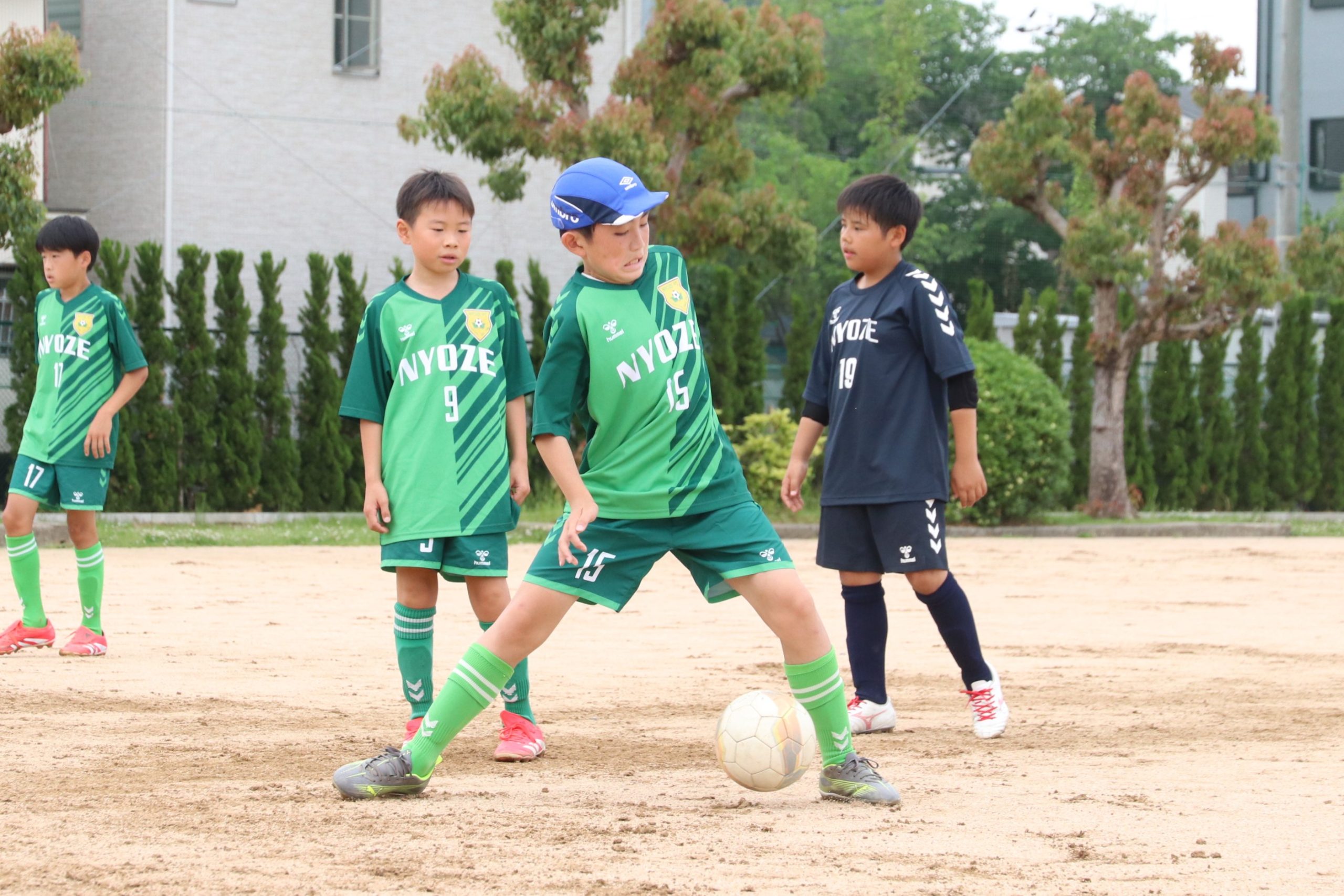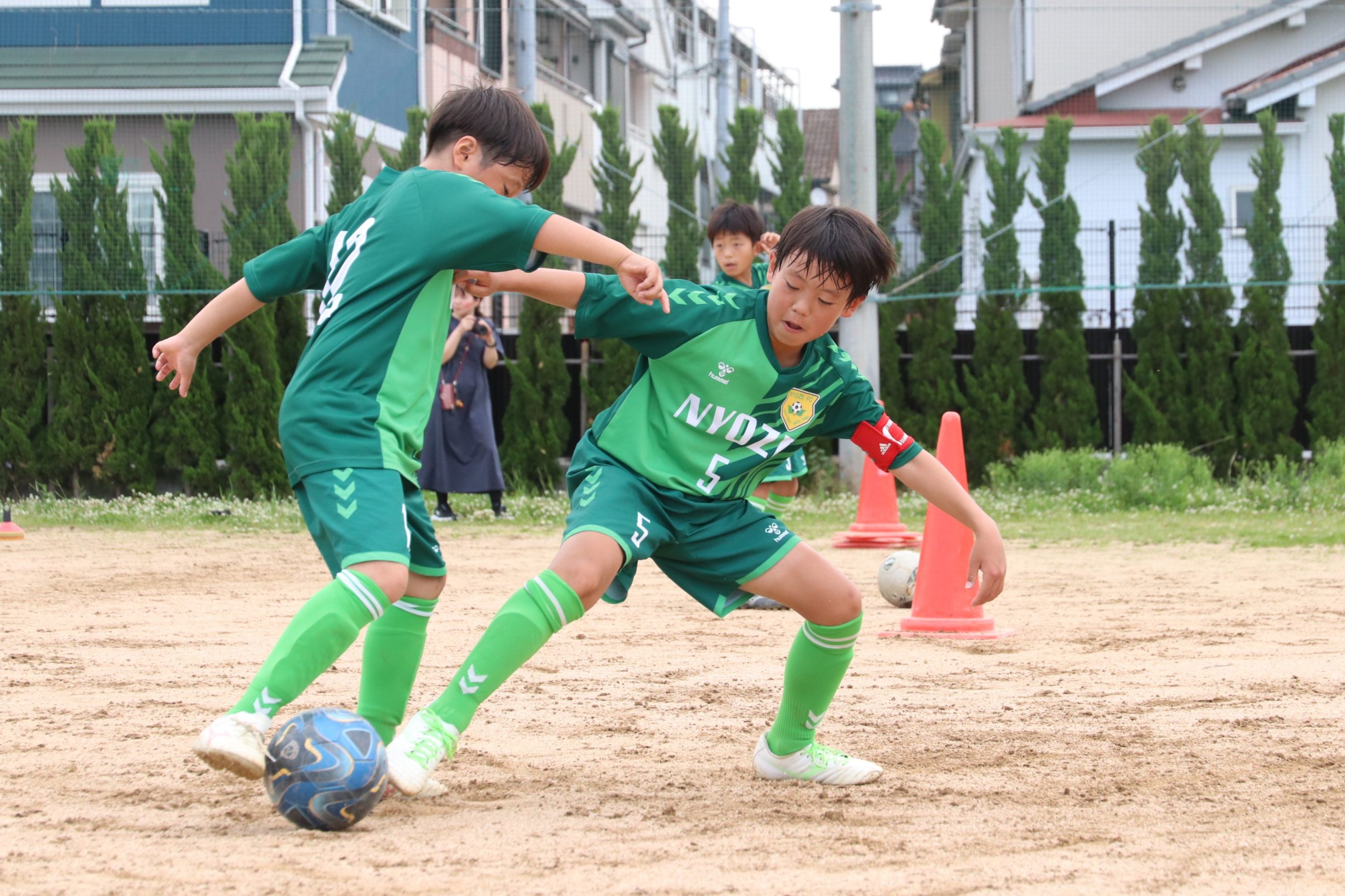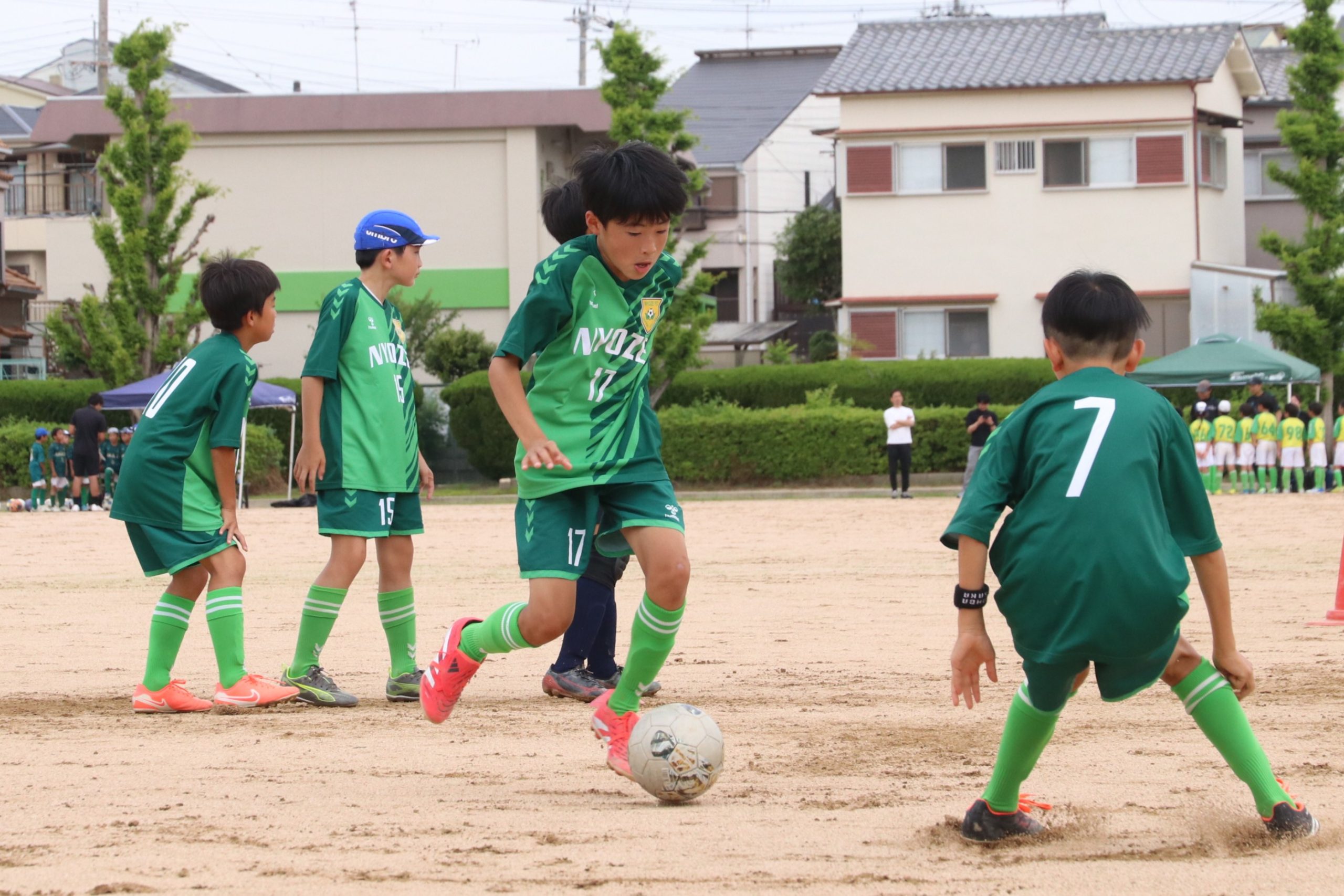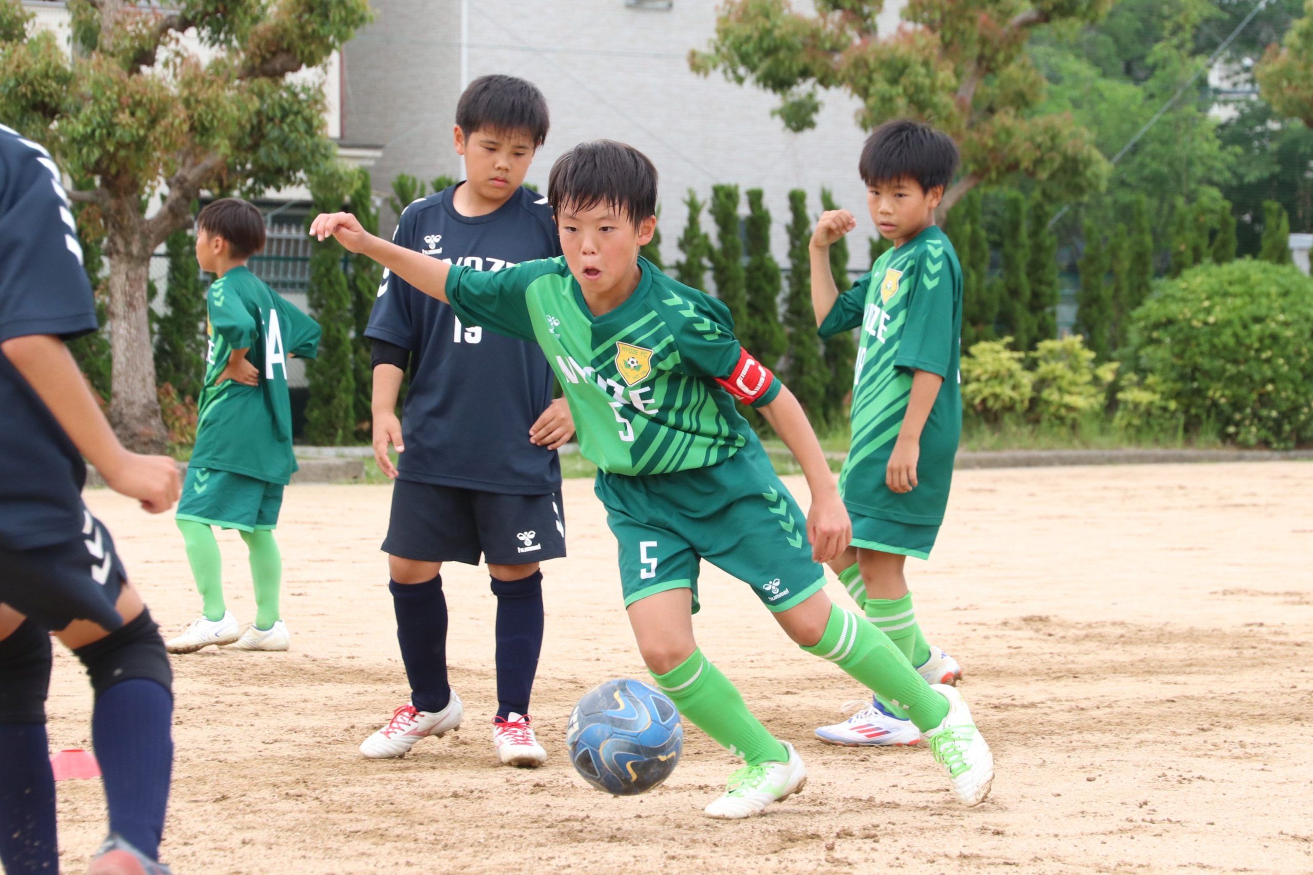 6年生をメインに担当するのは渕ノ側敏夫コーチで、基礎技術やメンタル面を熱心に指導、「基礎を大事に。中学生、高校生となっても役に立つ技術をつけてほしい」と話す。近所の今城塚古墳までの軽いランニングトレーニングなど気分転換を図るメニューなども取り入れている。また技術的、戦術的なサポートをするのは、チーム副代表も務める木田和之コーチで、自身の大学、社会人サッカーの経験を生かし、選手たちに指導を行っている。GK専門コーチもおり、所属選手は地区・地域トレセンにも選出されている。取材に訪れたこの日は、全員で声を揃えて元気にブラジル体操で身体を温め、2人1組での基礎練習、ショートパス、ロングキックでアップ。その後、1対1、2対2でのトレーニングでは、ドリブル突破時のスピードのかけ方や、ディフェンス時のポジショニングや身体の向きを細かく指導されていた。
