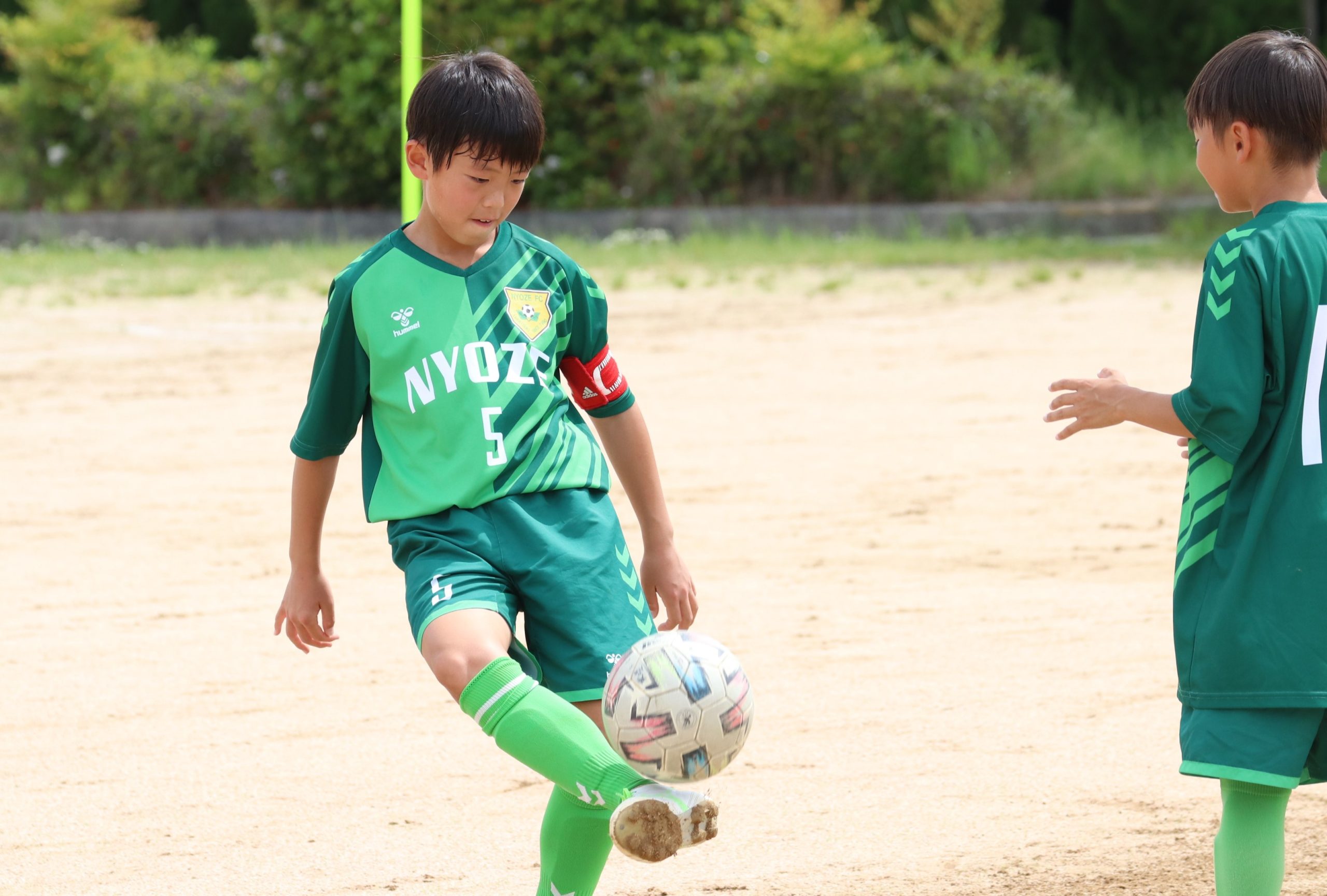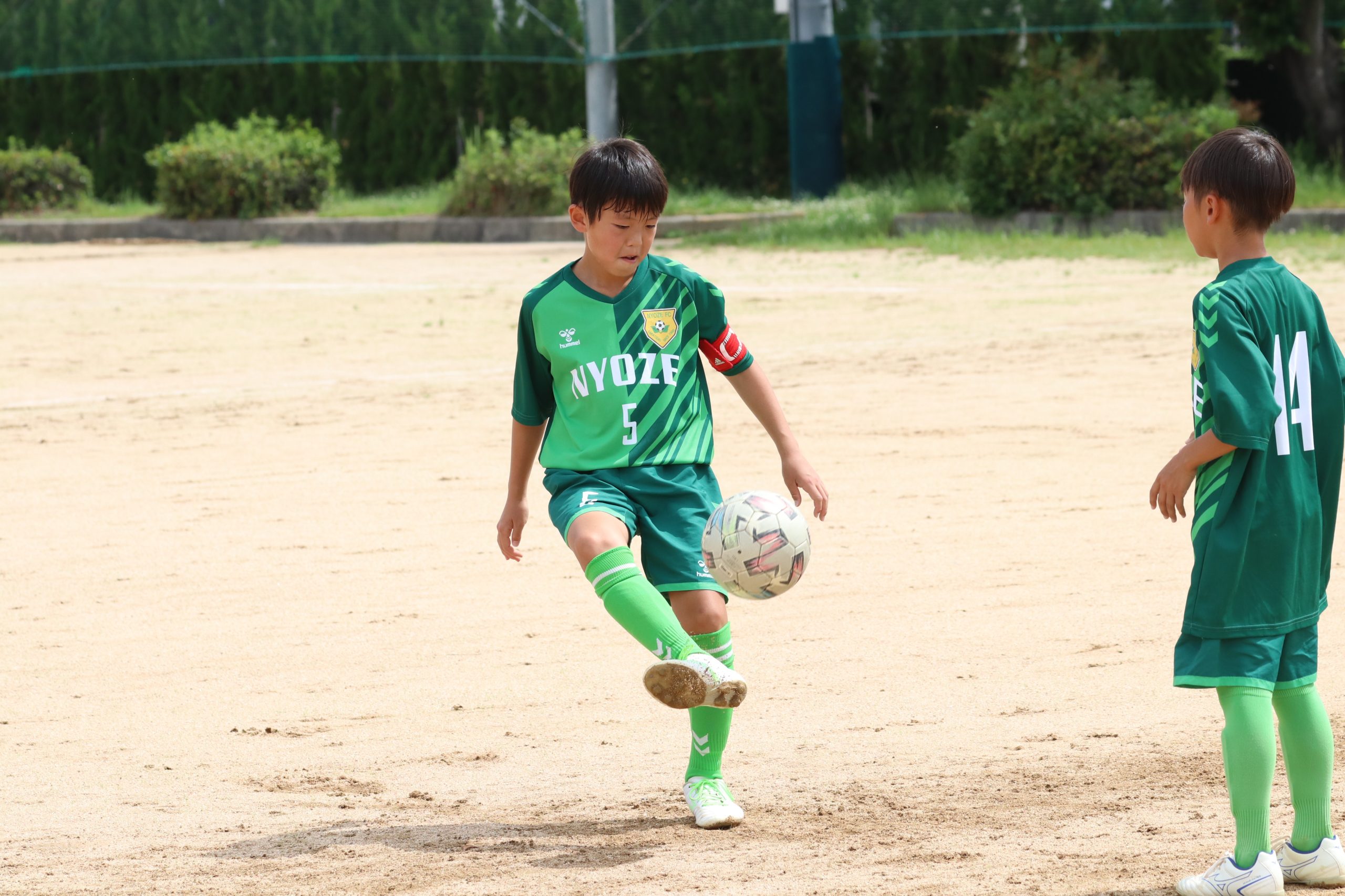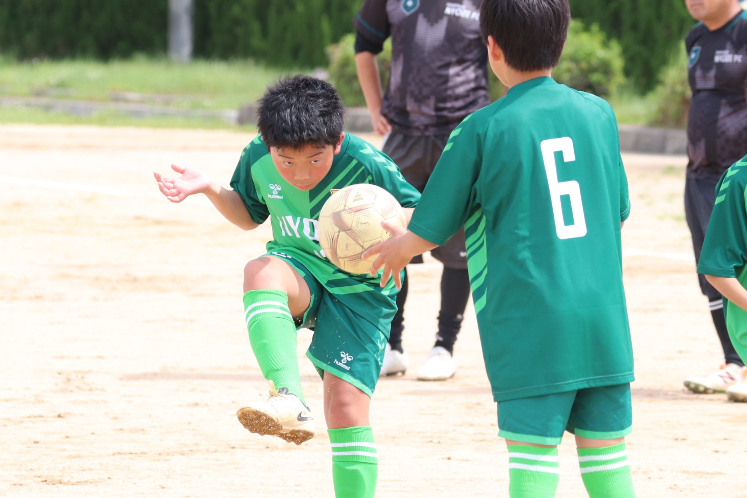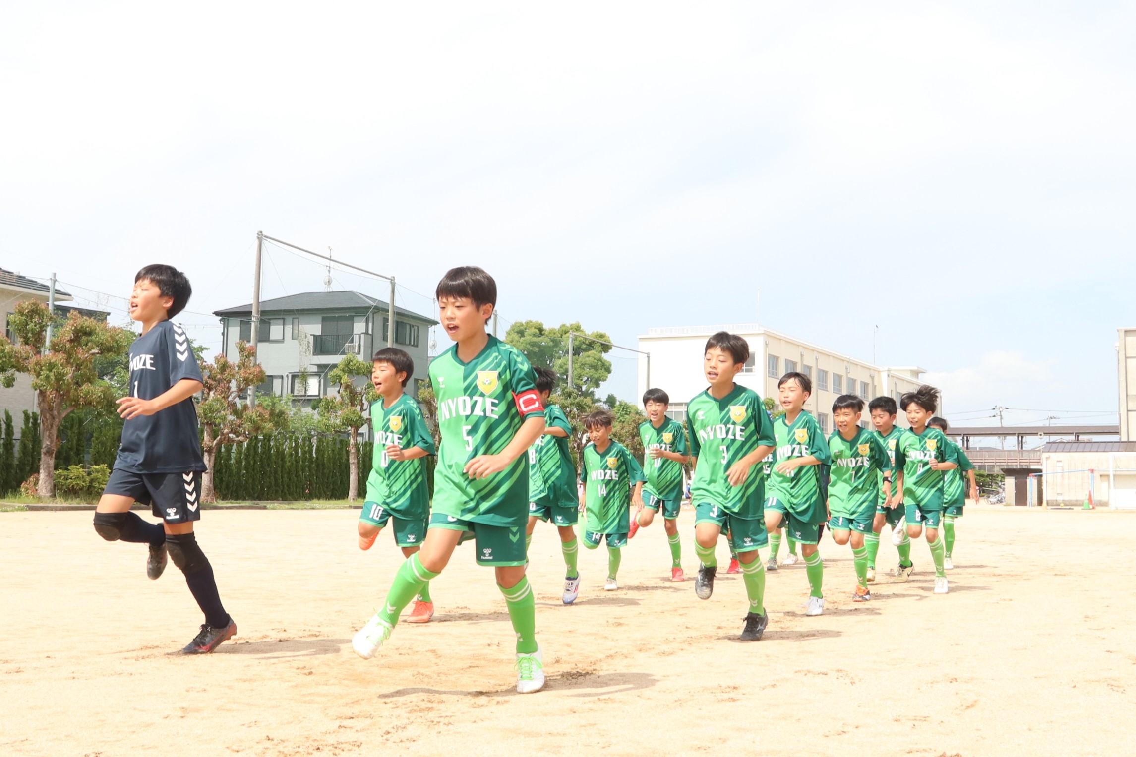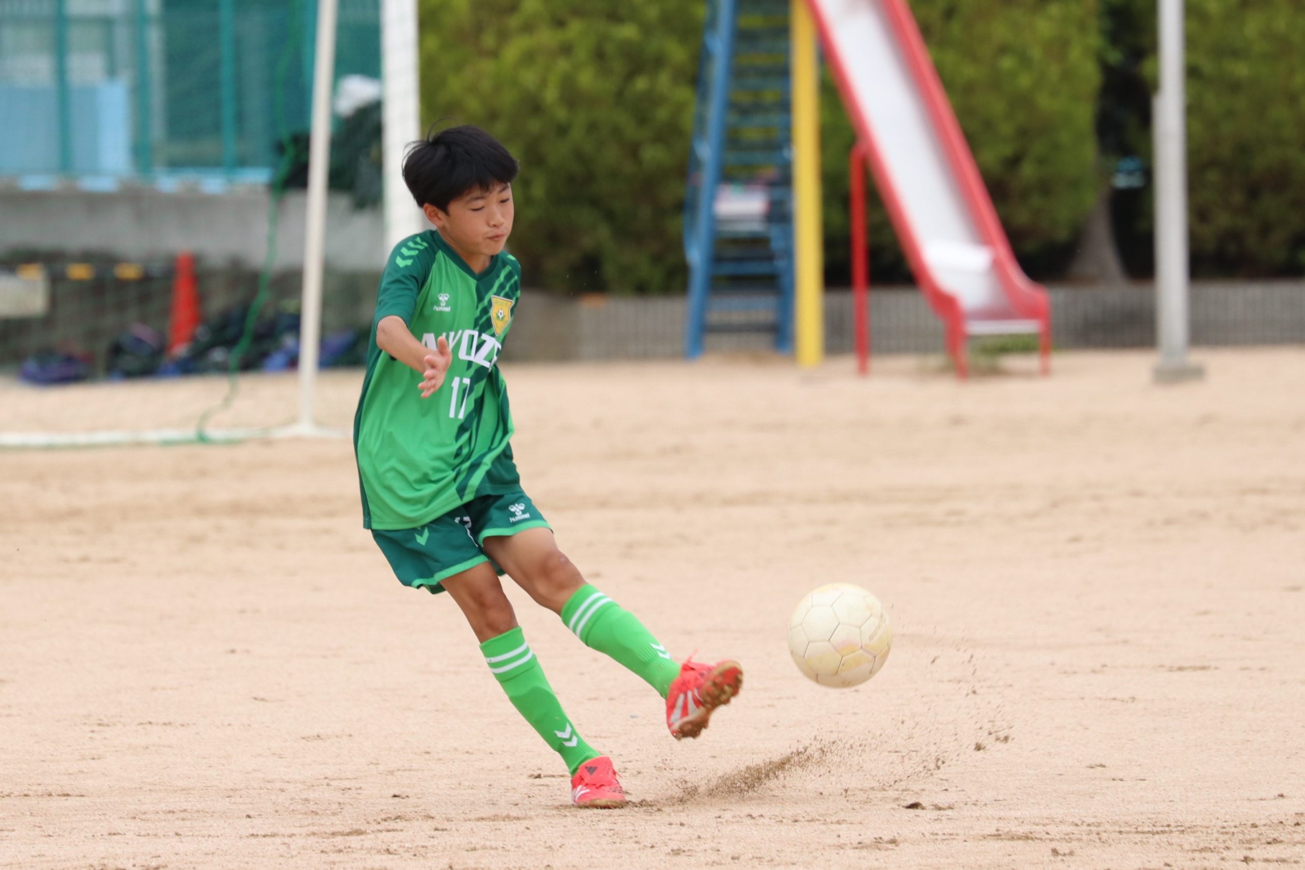 6年生をメインに担当するのは渕ノ側敏夫コーチで、基礎技術やメンタル面を熱心に指導、「基礎を大事に。中学生、高校生となっても役に立つ技術をつけてほしい」と話す。近所の今城塚古墳までの軽いランニングトレーニングなど気分転換を図るメニューなども取り入れている。また技術的、戦術的なサポートをするのは、チーム副代表も務める木田和之コーチで、自身の大学、社会人サッカーの経験を生かし、選手たちに指導を行っている。GK専門コーチもおり、所属選手は地区・地域トレセンにも選出されている。取材に訪れたこの日は、全員で声を揃えて元気にブラジル体操で身体を温め、2人1組での基礎練習、ショートパス、ロングキックでアップ。その後、1対1、2対2でのトレーニングでは、ドリブル突破時のスピードのかけ方や、ディフェンス時のポジショニングや身体の向きを細かく指導されていた。