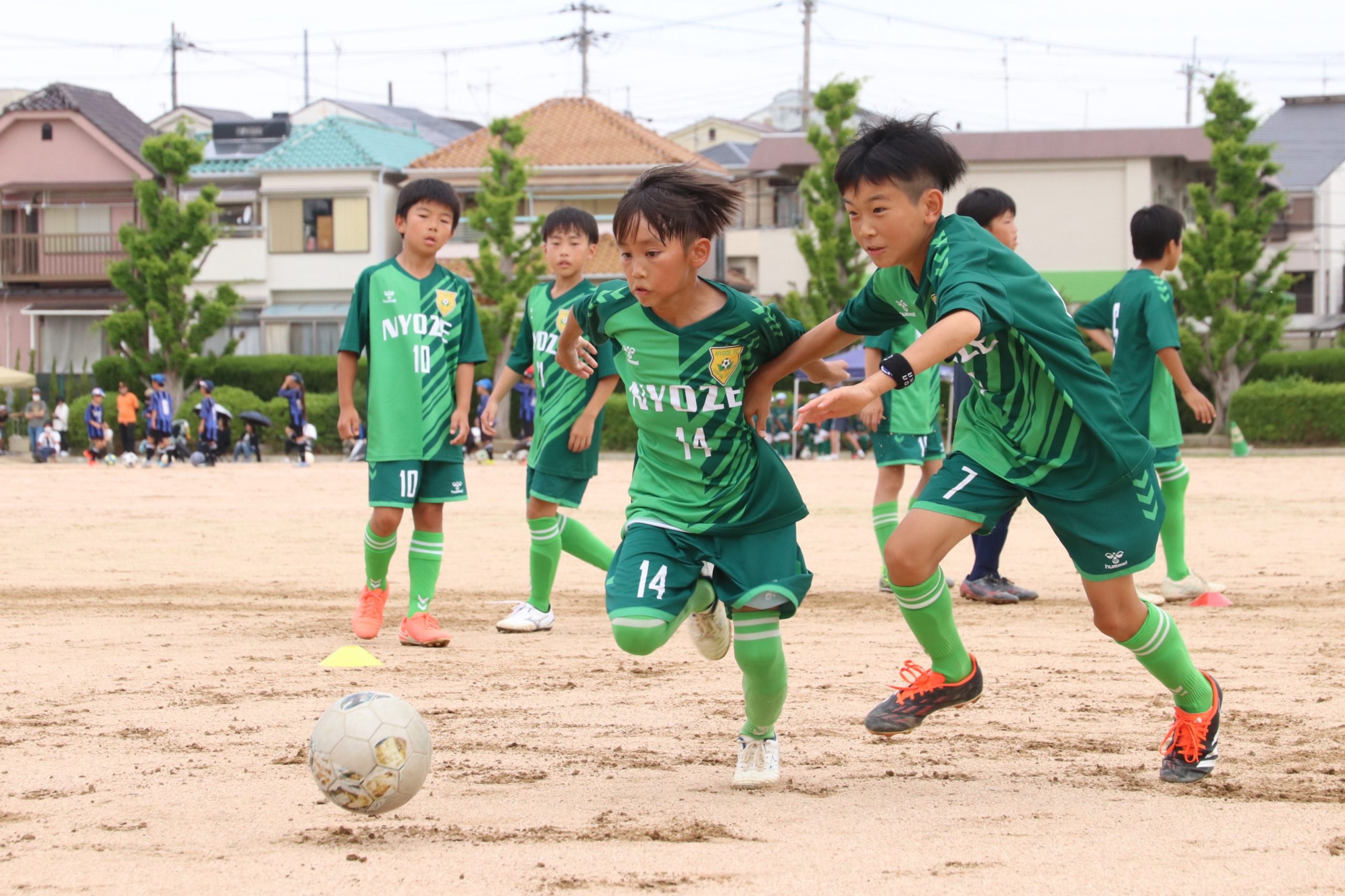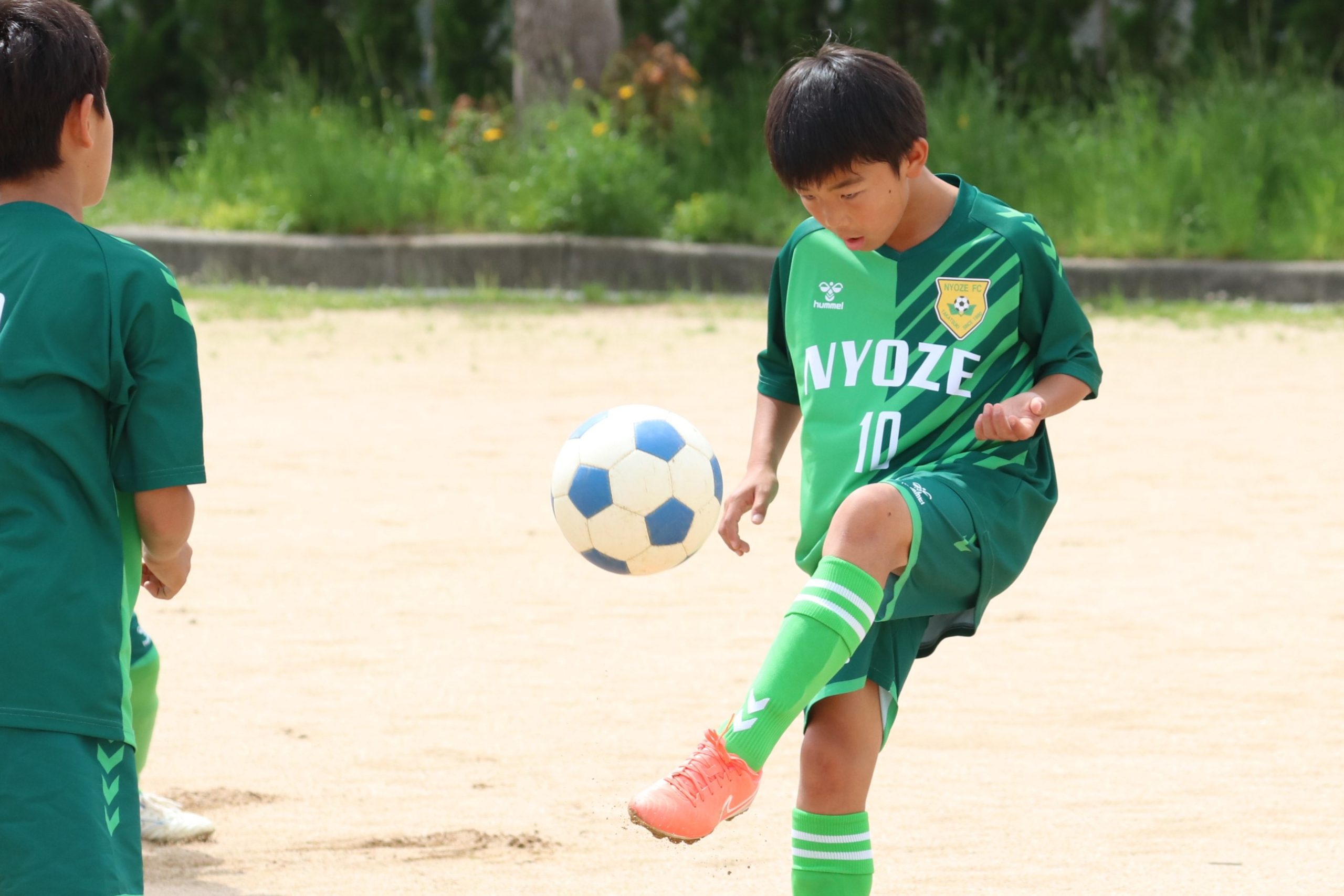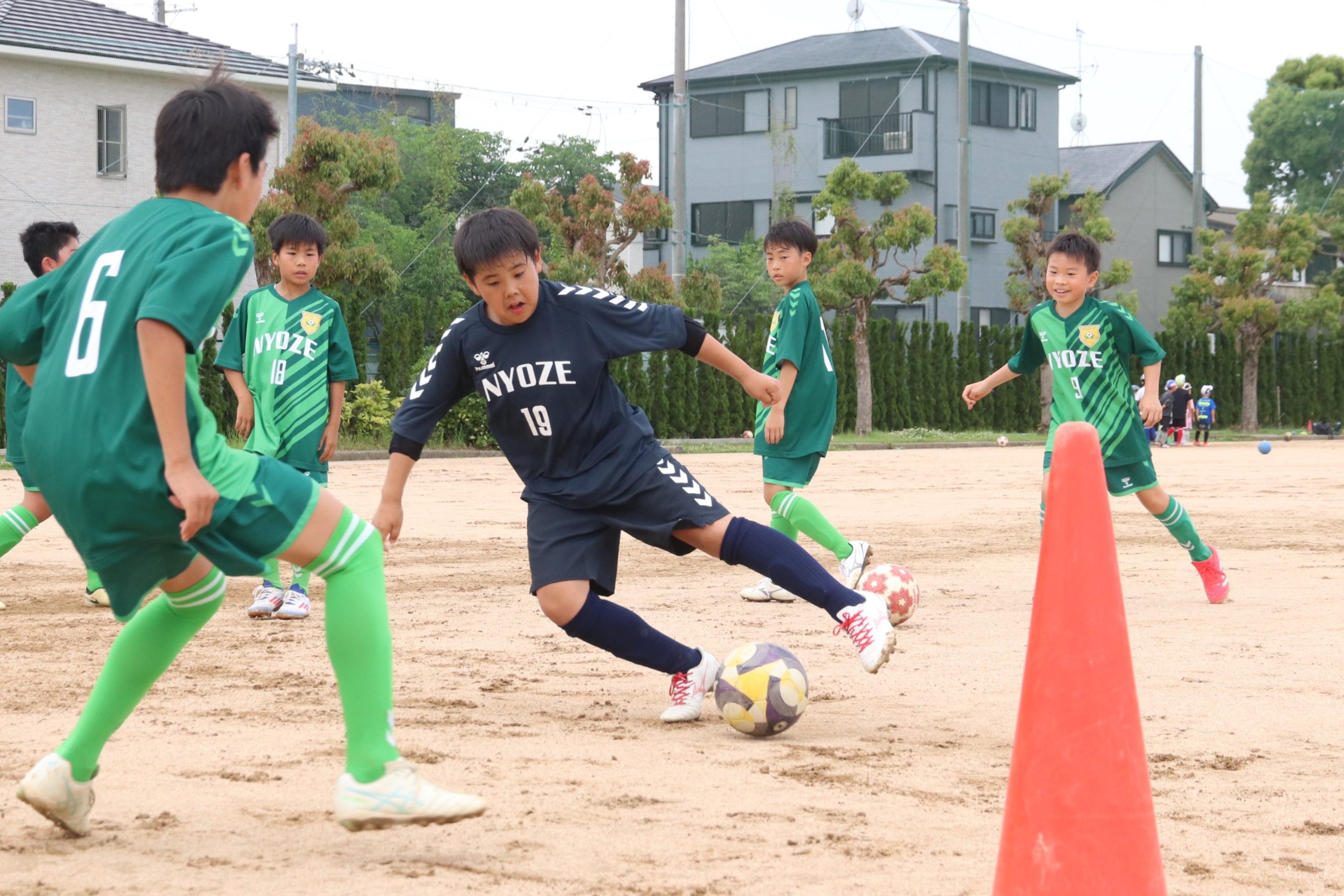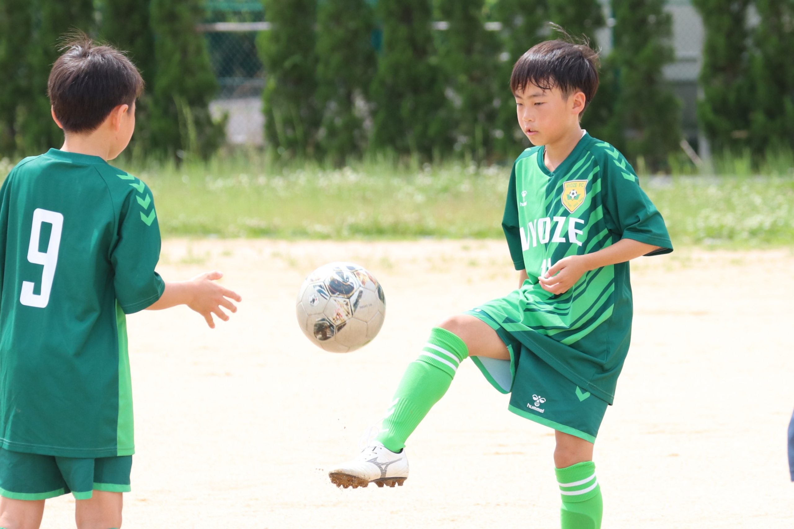 6年生をメインに担当するのは渕ノ側敏夫コーチで、基礎技術やメンタル面を熱心に指導、「基礎を大事に。中学生、高校生となっても役に立つ技術をつけてほしい」と話す。近所の今城塚古墳までの軽いランニングトレーニングなど気分転換を図るメニューなども取り入れている。また技術的、戦術的なサポートをするのは、チーム副代表も務める木田和之コーチで、自身の大学、社会人サッカーの経験を生かし、選手たちに指導を行っている。GK専門コーチもおり、所属選手は地区・地域トレセンにも選出されている。取材に訪れたこの日は、全員で声を揃えて元気にブラジル体操で身体を温め、2人1組での基礎練習、ショートパス、ロングキックでアップ。その後、1対1、2対2でのトレーニングでは、ドリブル突破時のスピードのかけ方や、ディフェンス時のポジショニングや身体の向きを細かく指導されていた。