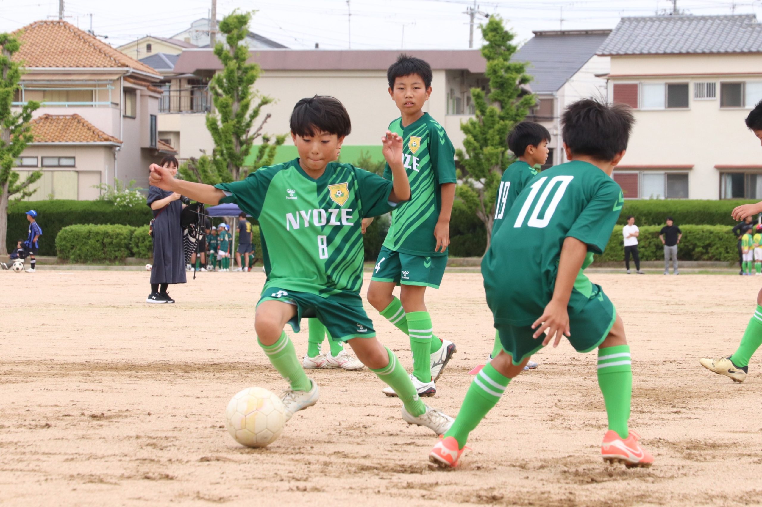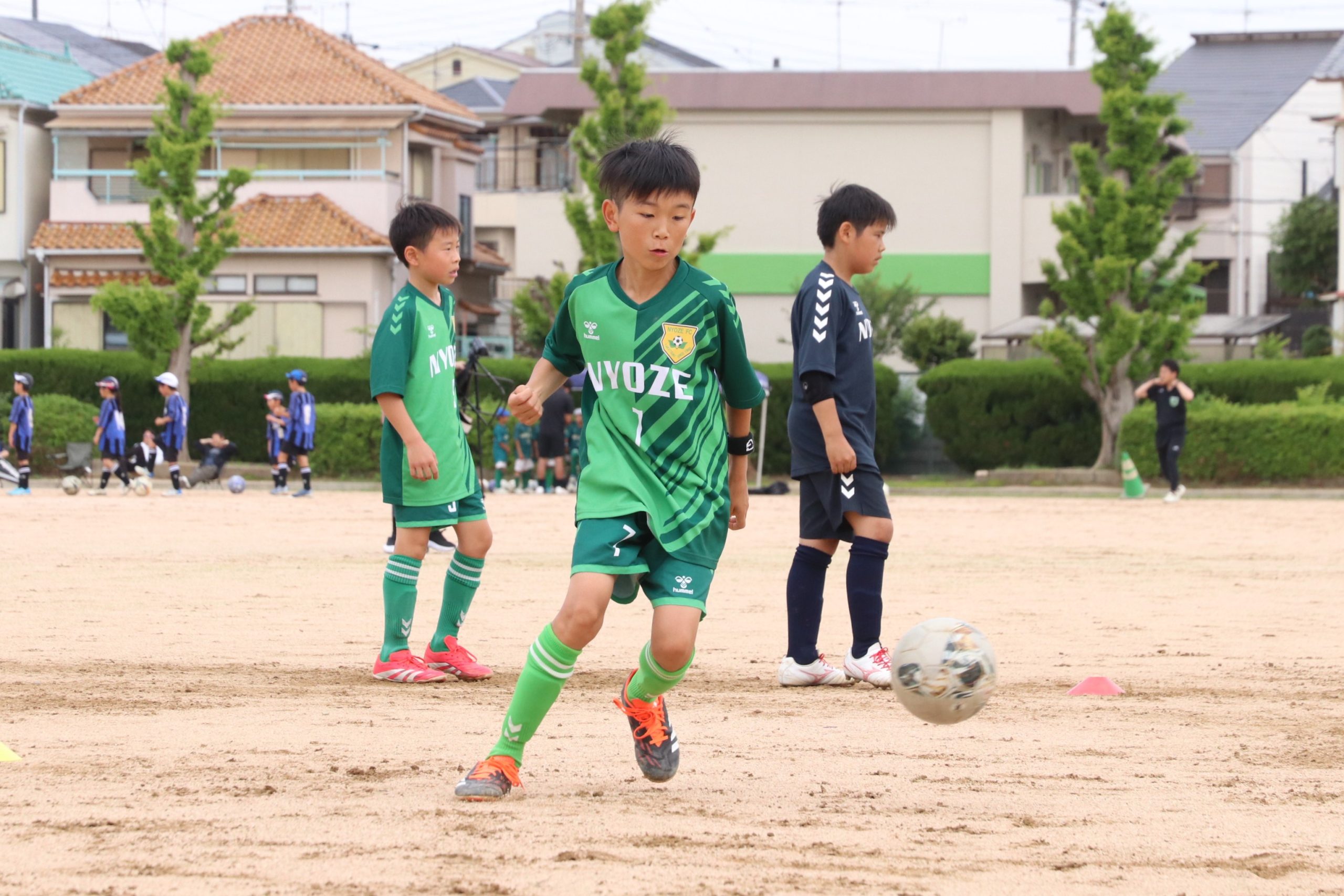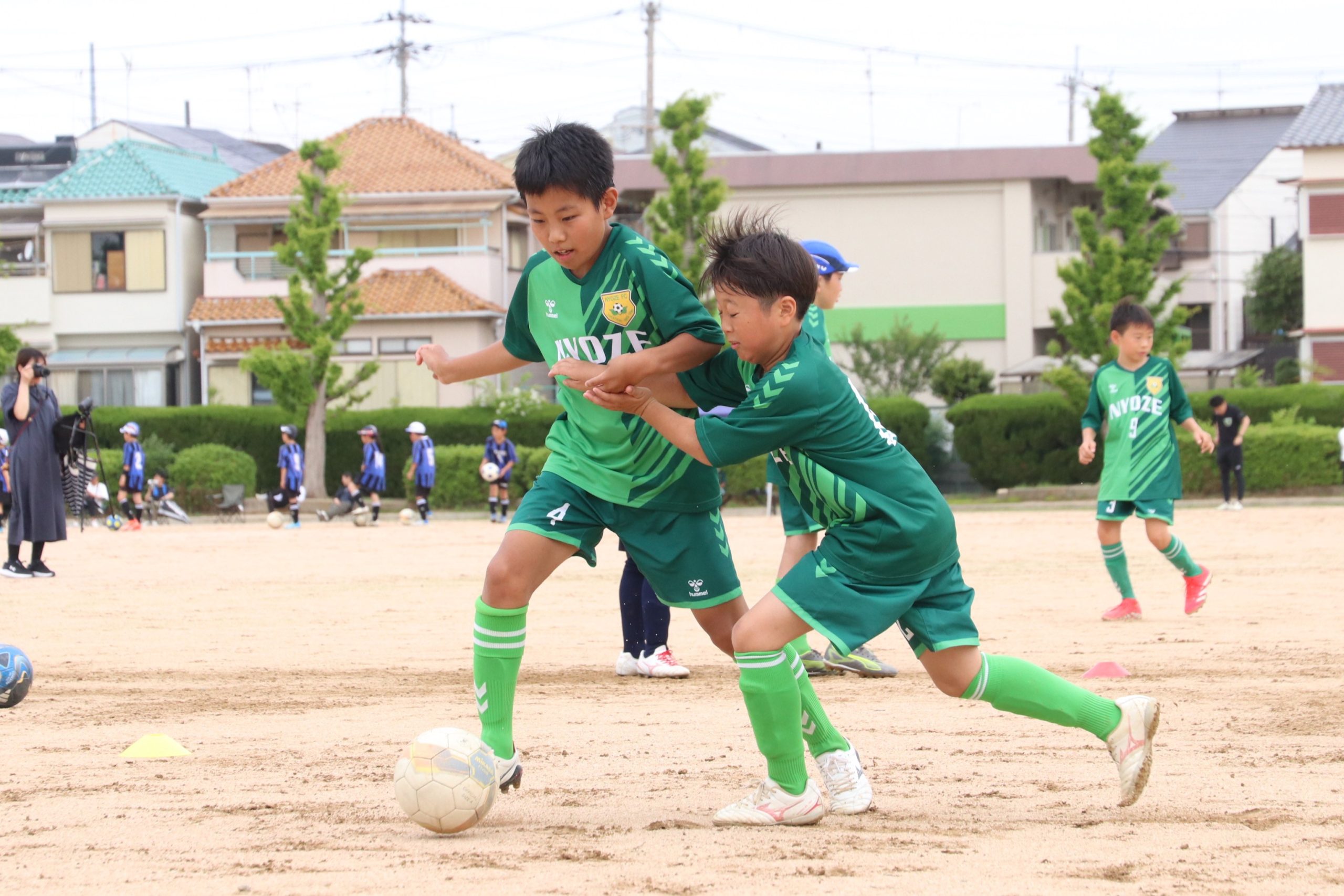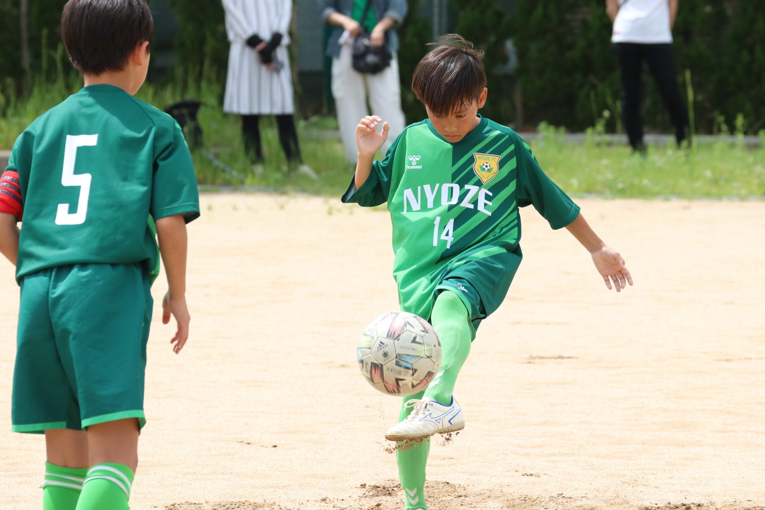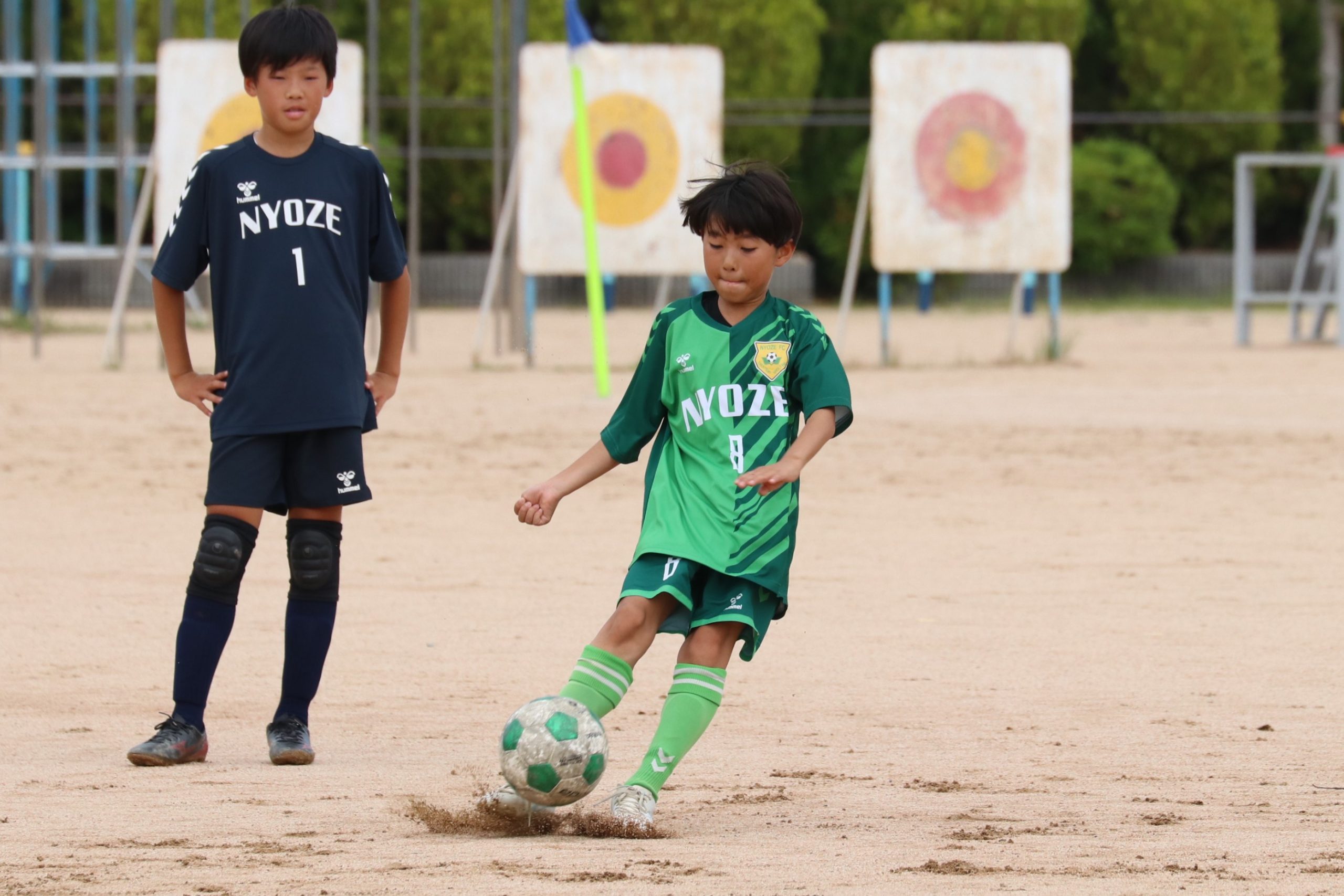 6年生をメインに担当するのは渕ノ側敏夫コーチで、基礎技術やメンタル面を熱心に指導、「基礎を大事に。中学生、高校生となっても役に立つ技術をつけてほしい」と話す。近所の今城塚古墳までの軽いランニングトレーニングなど気分転換を図るメニューなども取り入れている。また技術的、戦術的なサポートをするのは、チーム副代表も務める木田和之コーチで、自身の大学、社会人サッカーの経験を生かし、選手たちに指導を行っている。GK専門コーチもおり、所属選手は地区・地域トレセンにも選出されている。取材に訪れたこの日は、全員で声を揃えて元気にブラジル体操で身体を温め、2人1組での基礎練習、ショートパス、ロングキックでアップ。その後、1対1、2対2でのトレーニングでは、ドリブル突破時のスピードのかけ方や、ディフェンス時のポジショニングや身体の向きを細かく指導されていた。