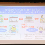 そこで、こういった問題の解決方法を子どもたちみんなで考え、意見を交換。「今まであまり食べられてない低利用魚をもっと研究し、さらにたくさんの種類の魚をおいしく食べられるようにする」「食品の無駄をなくすよう工夫して、未来でもお魚のお寿司が食べられるようにしたい」と話すなど、参加した子供たちにとっては、食の大事さを感じる貴重な時間となった。