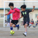 チームキャプテンは横山優斗くん。この取材時に、チーム全員による多数決、「ゆうとしかおらんやろ」、「ゆうとの他に誰がおるん」などの声が上がった結果、キャプテンに決まった。サッカーを始めたのは、地元フットサル施設でのスクールで蹴り始めたのがきっかけ。その後、新北島小学校のチームに入団し、5年時には4種公式戦も経験している。「ラソミーゴ新北島」でのポジションはCBで、「憧れの選手は、吉田麻也選手。リーダーシップに憧れている。守備の要として、相手ゴールを許さない。ボールを奪って、味方にパスをつなぎ、得点につなぎたい。」と力強く話してくれた。