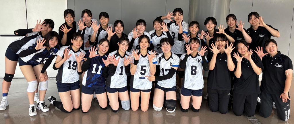 ▷京都産業大・文大美咲(4年)ゲーム終盤からピンチサーバーで出場した小林彩夏(3年)による安定したレシーブとチームの雰囲気を盛り上げる声掛けによって、京産らしいバレーをすることでき、勝ちきることができた。最終戦は京産バレーで全て出し切ります!今リーグの集大成は、京産らしく強気なプレーで勝ち切ります!