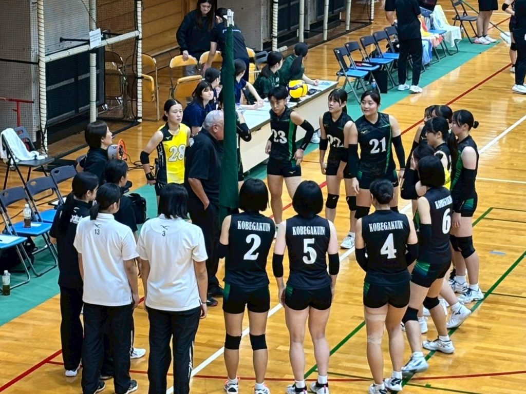 ▷神戸学院大・藤原彩華(2年)竈想花(3年)がブロックの間を抜けたスパイクを必ずあげたり、二段トスをスパイカーの打てる位置に必ず持っていったり、自分のやるべきことはやる姿勢を見て、チーム全員の意識が上がったと思う。引き続き、全勝優勝目指して、また1から練習に取り組んでいきたいと思います。