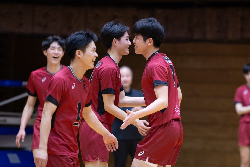 ▷立命館大・鹿嶋日菜子(4年) 木内甫(4年)の鋭いスパイクや安元柊(2年)のブロックがよく決まったことが勝利につながった。全勝に向けて、明日も勝ち切ります!