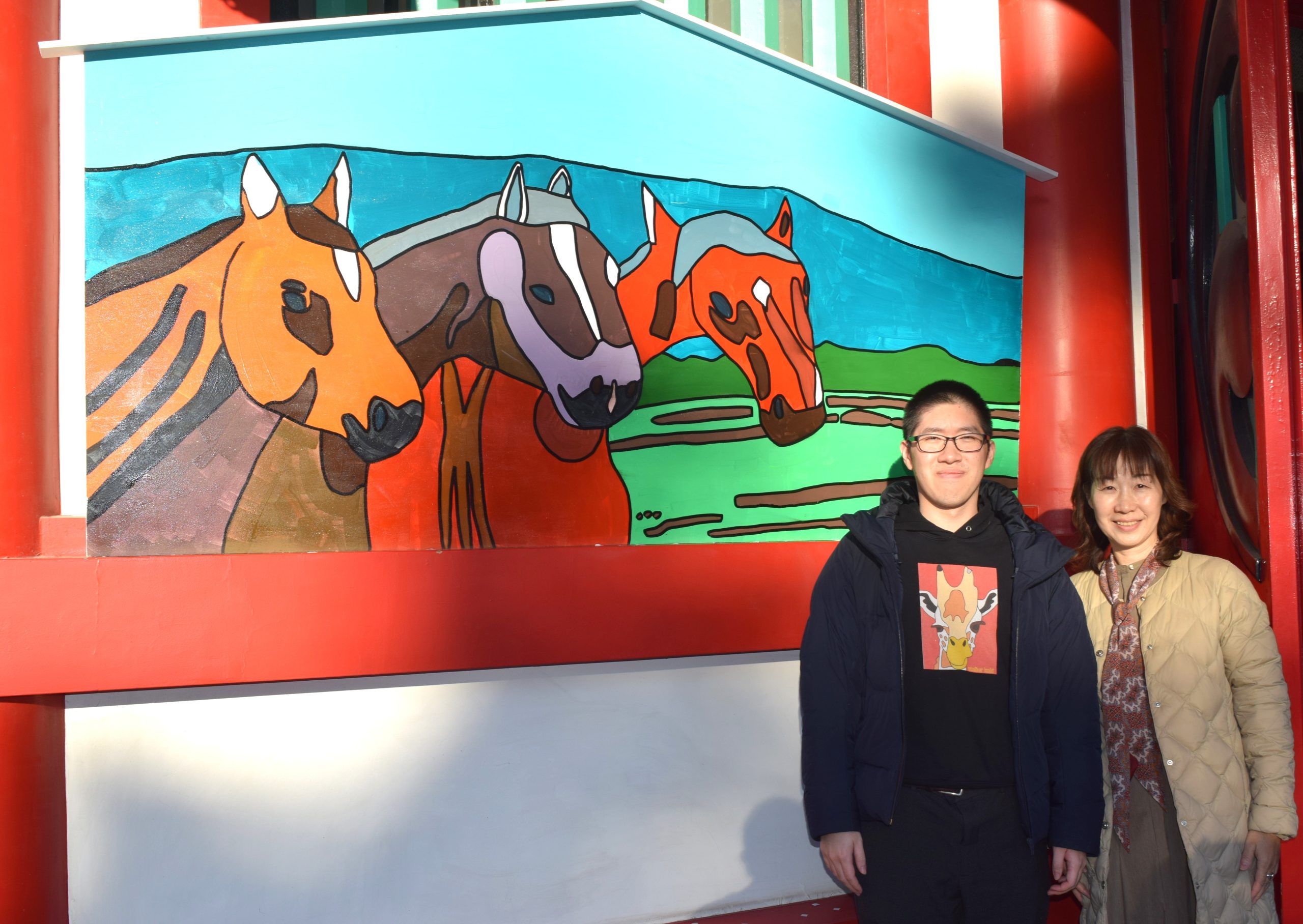 来年の干支「午(ウマ)」の大絵馬を描いた木下さんは、重度自閉症の障がいを持ちながら、幼少の頃から絵を描くことが大好きで、特に動物の絵を得意としている。同芸術祭でも21年の全国公募展で、大作「クジラと仲間たち」で大丸松阪屋百貨店賞を受賞。これが縁となり、23年に松阪屋上野店で初の個展が開催されたほか、TBSの報道特集で木下さんがアートを製作する様子も全国放映された。